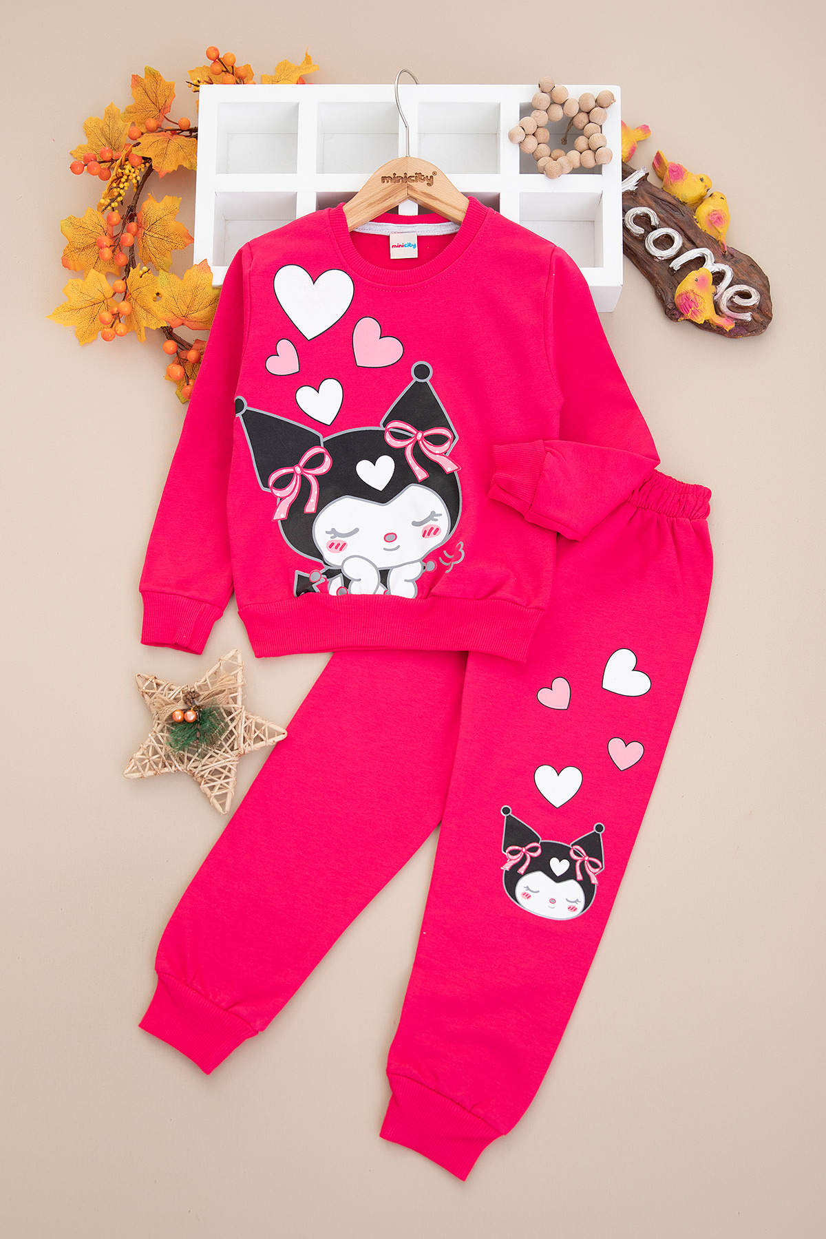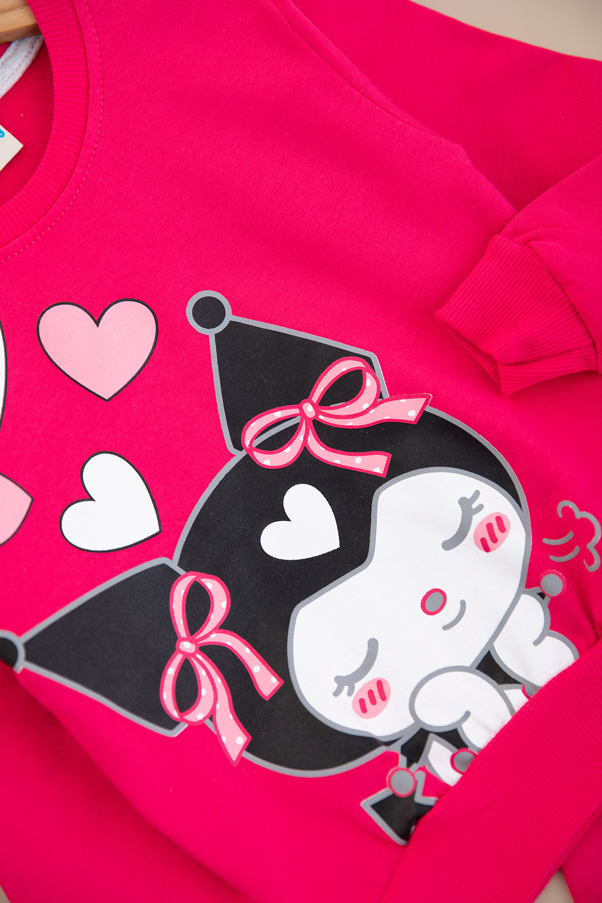 Kız Çocuk Kuromi Baskılı Üçip Takım - 6001 (4-10 Yaş)