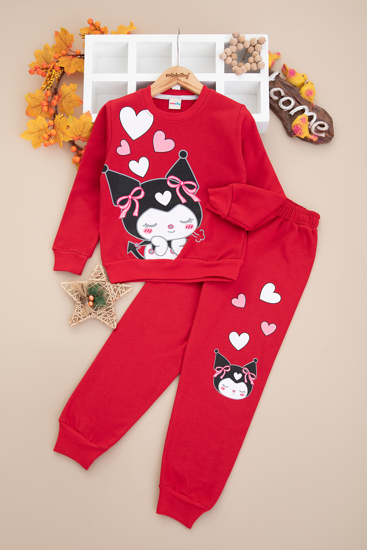 Kız Çocuk Kuromi Baskılı Üçip Takım - 6001 (4-10 Yaş)