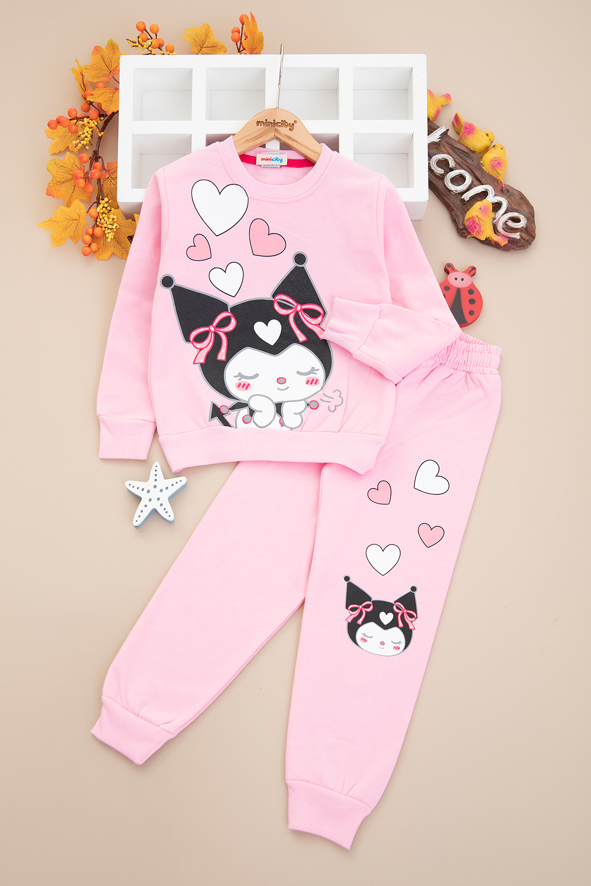 Kız Çocuk Kuromi Baskılı Üçip Takım - 6001 (4-10 Yaş)