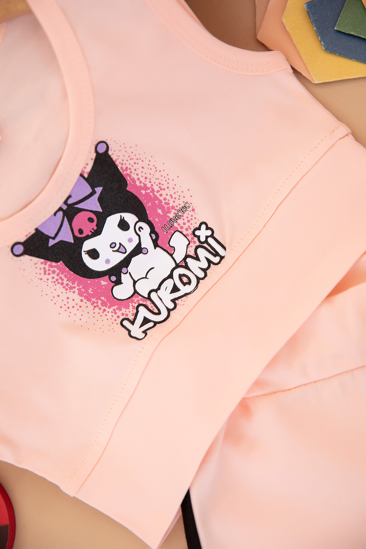 Kız Çocuk Kuromi Crop Badili Şortlu Takım - 6115 (2-5 Yaş)