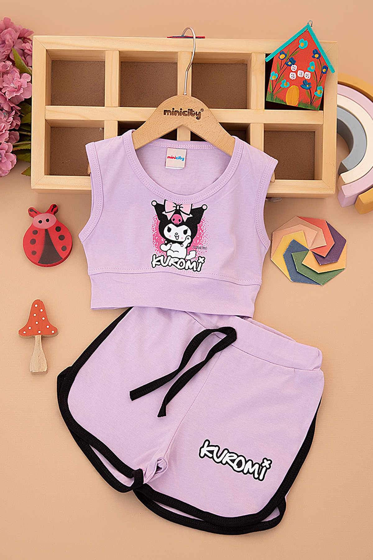 Kız Çocuk Kuromi Crop Badili Şortlu Takım - 6115 (2-5 Yaş)