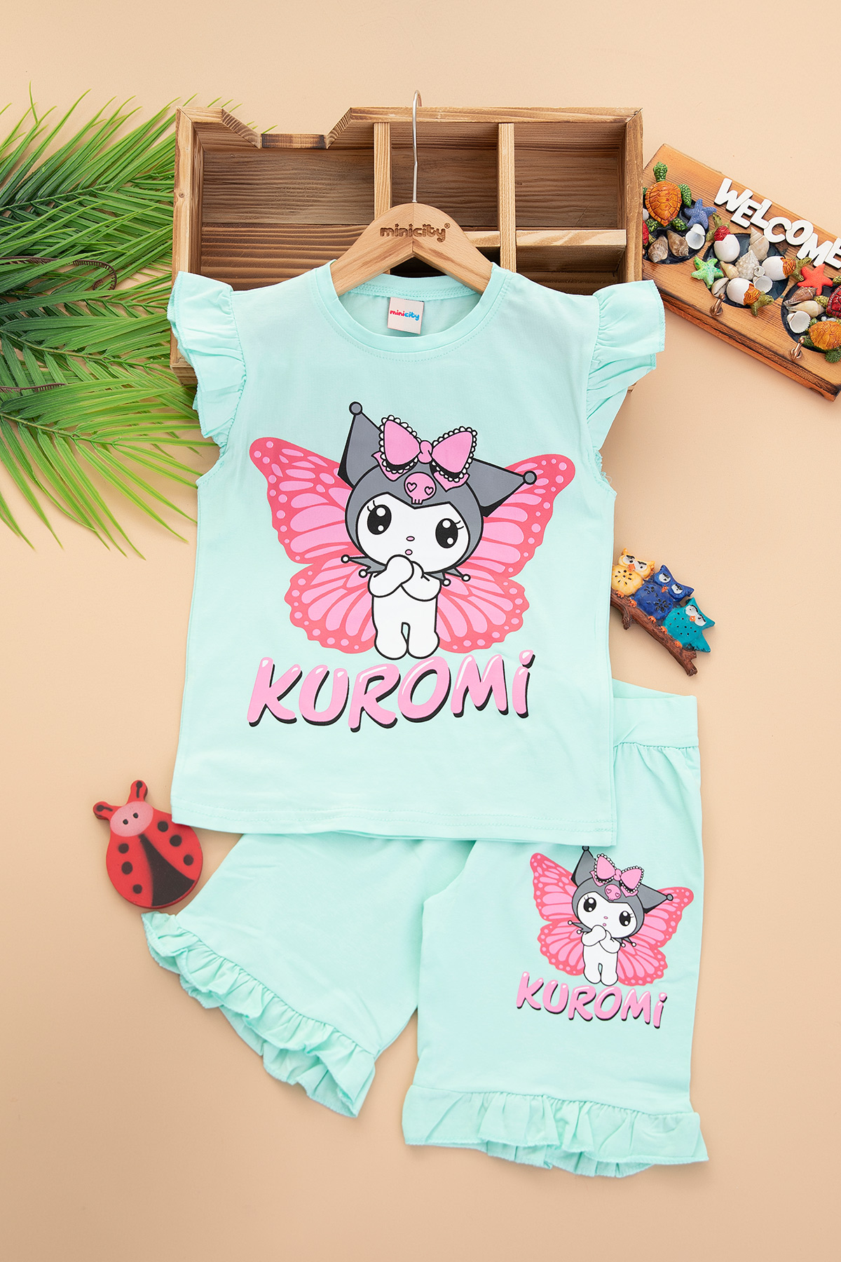 Kız Çocuk Kuromi Fırfırlı Şortlu Takım - 2104 (4-10 Yaş)