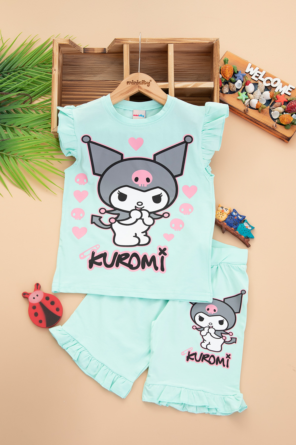 Kız Çocuk Kuromi Fırfırlı Şortlu Takım - 2107 (4-10 Yaş)