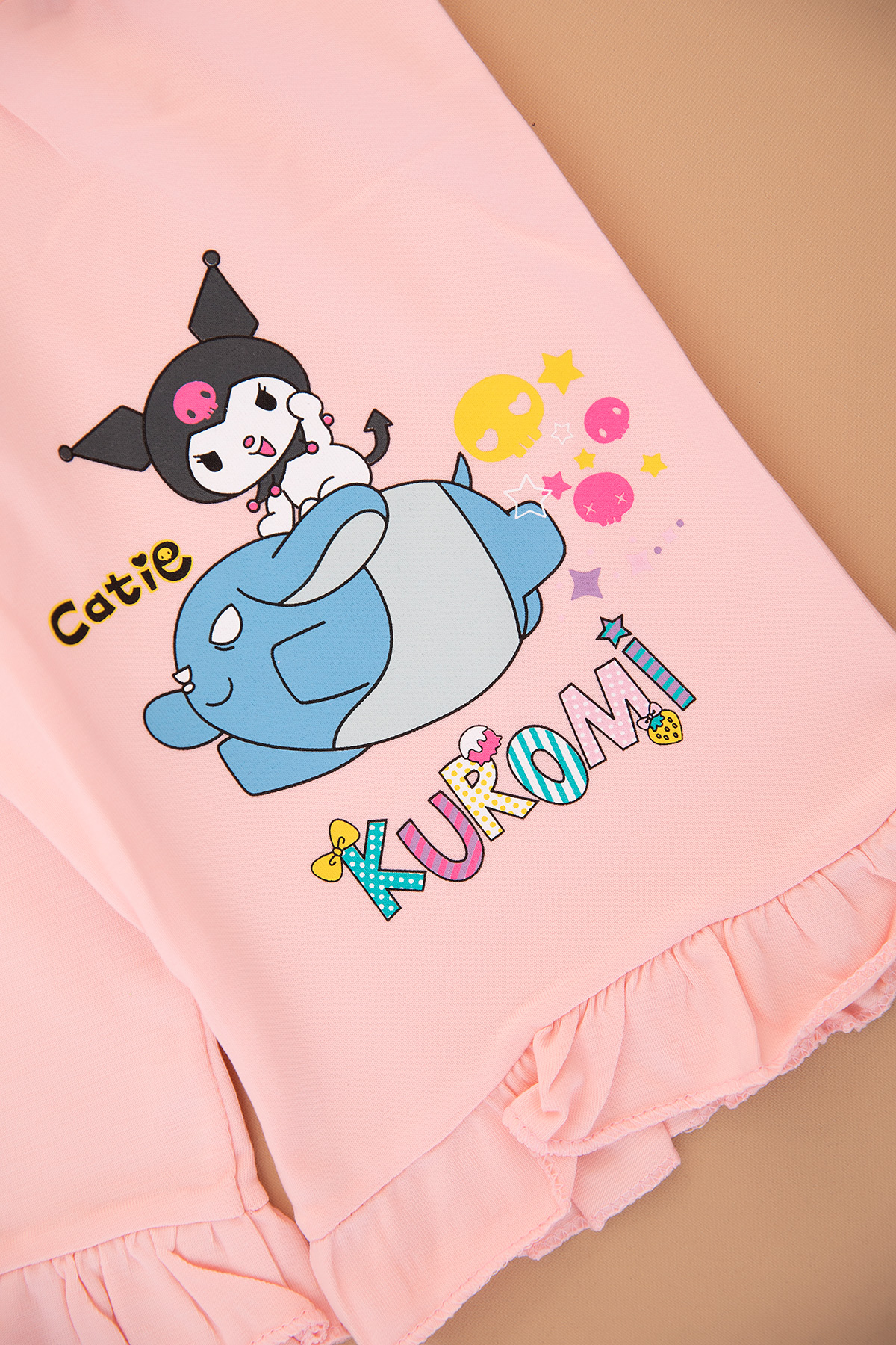 Kız Çocuk Kuromi Fırfırlı Şortlu Takım - 2108 (4-10 Yaş)