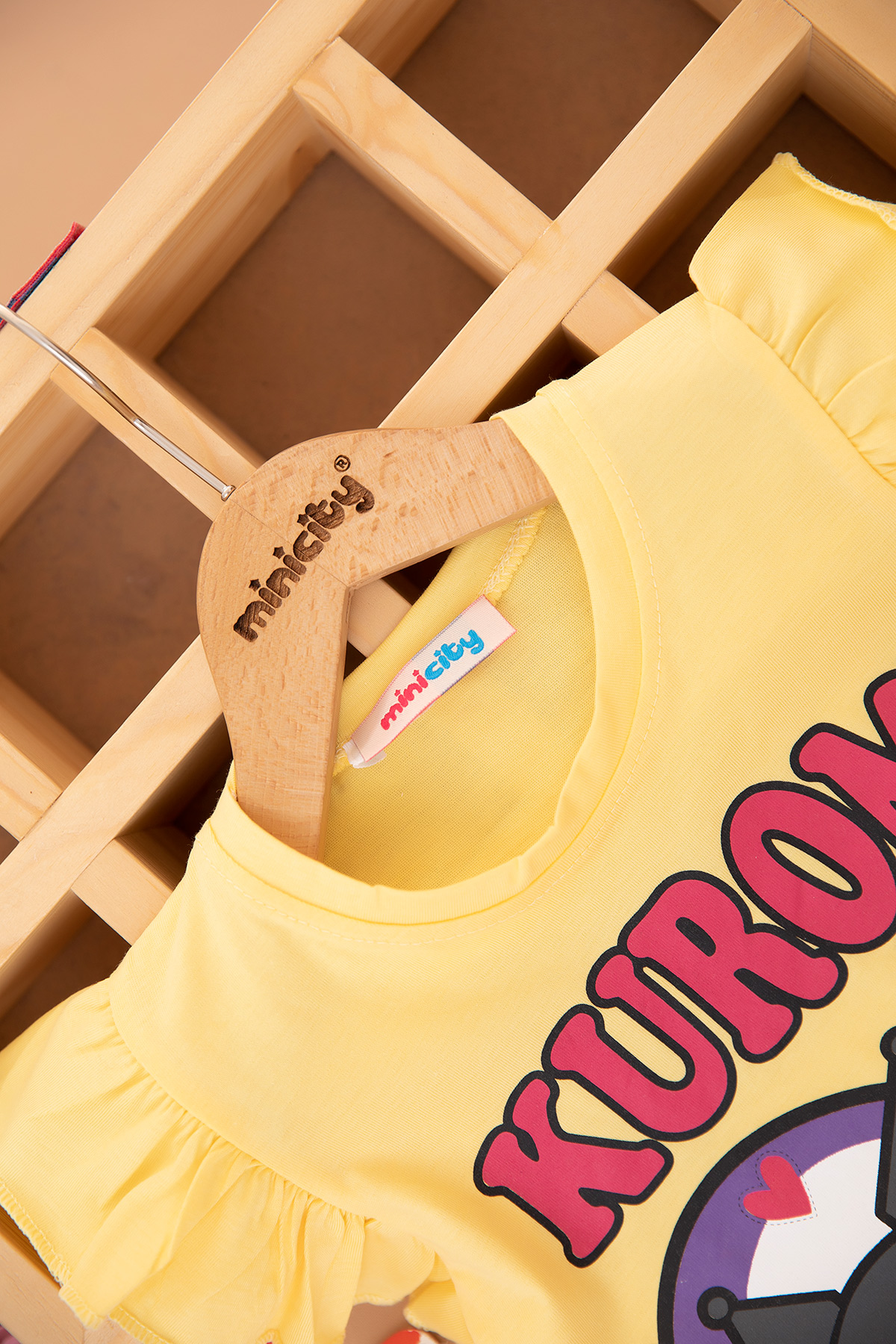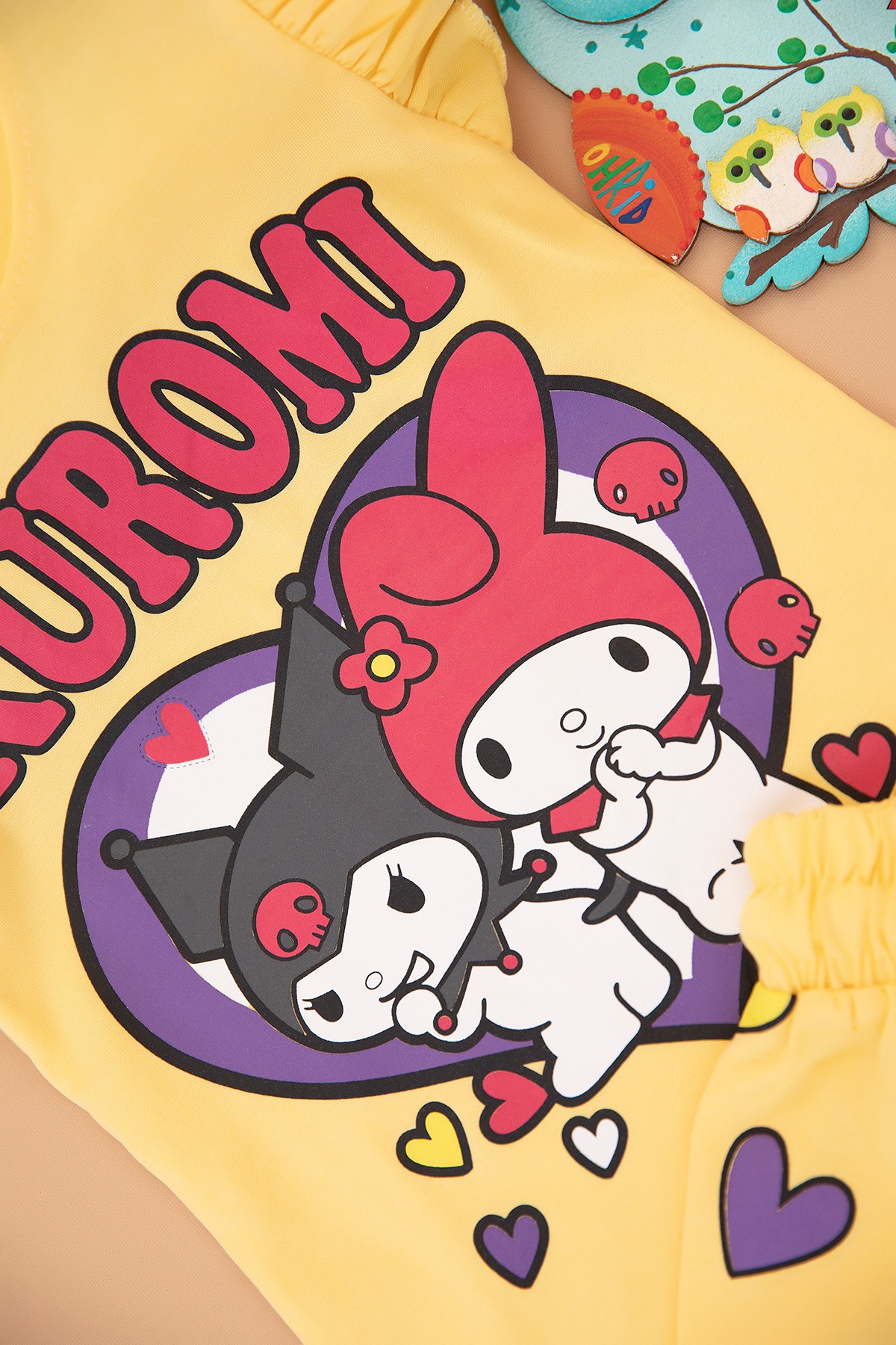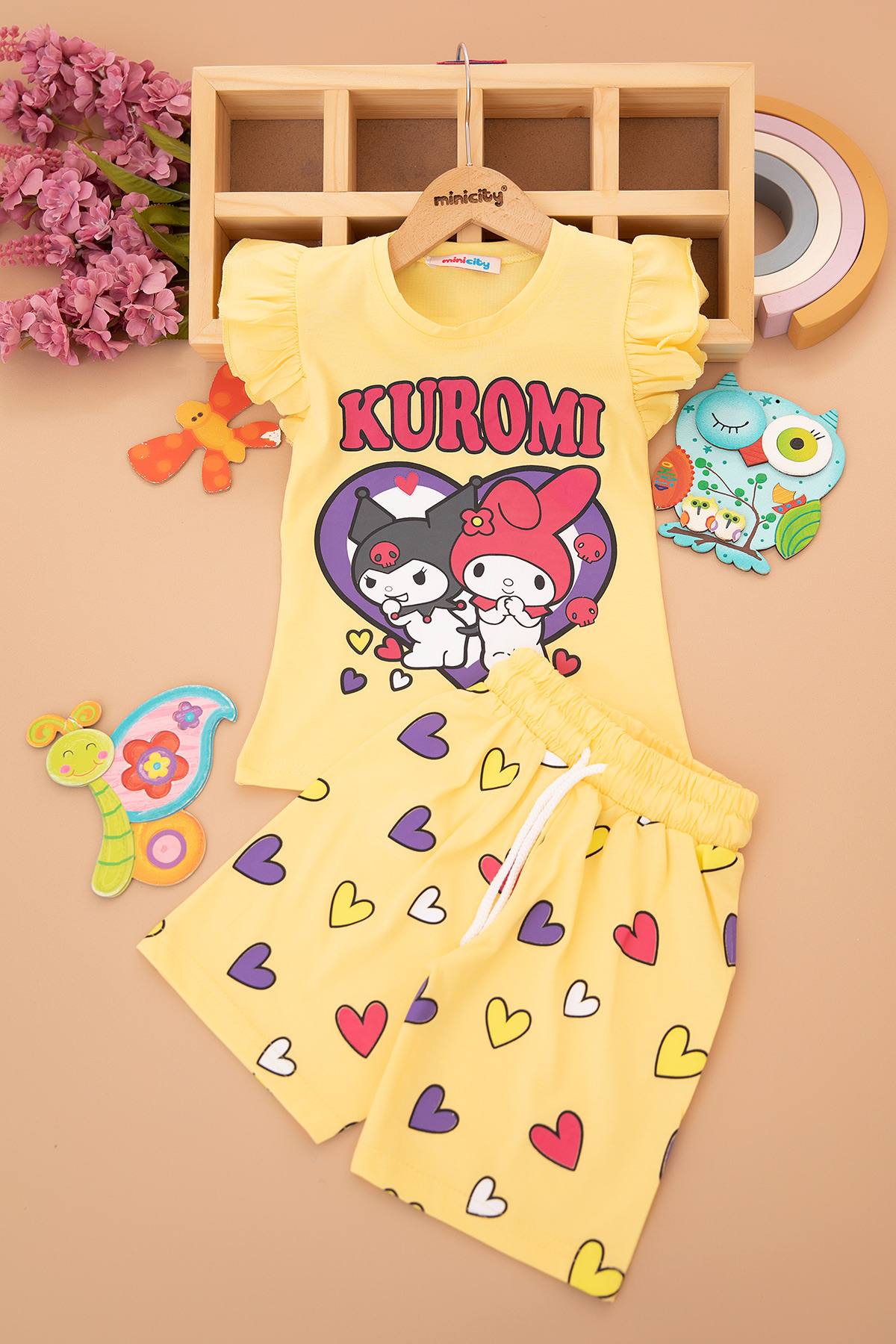 Kız Çocuk Kuromi Kalp Baskılı Şortlu Takım (3-10 Yaş)