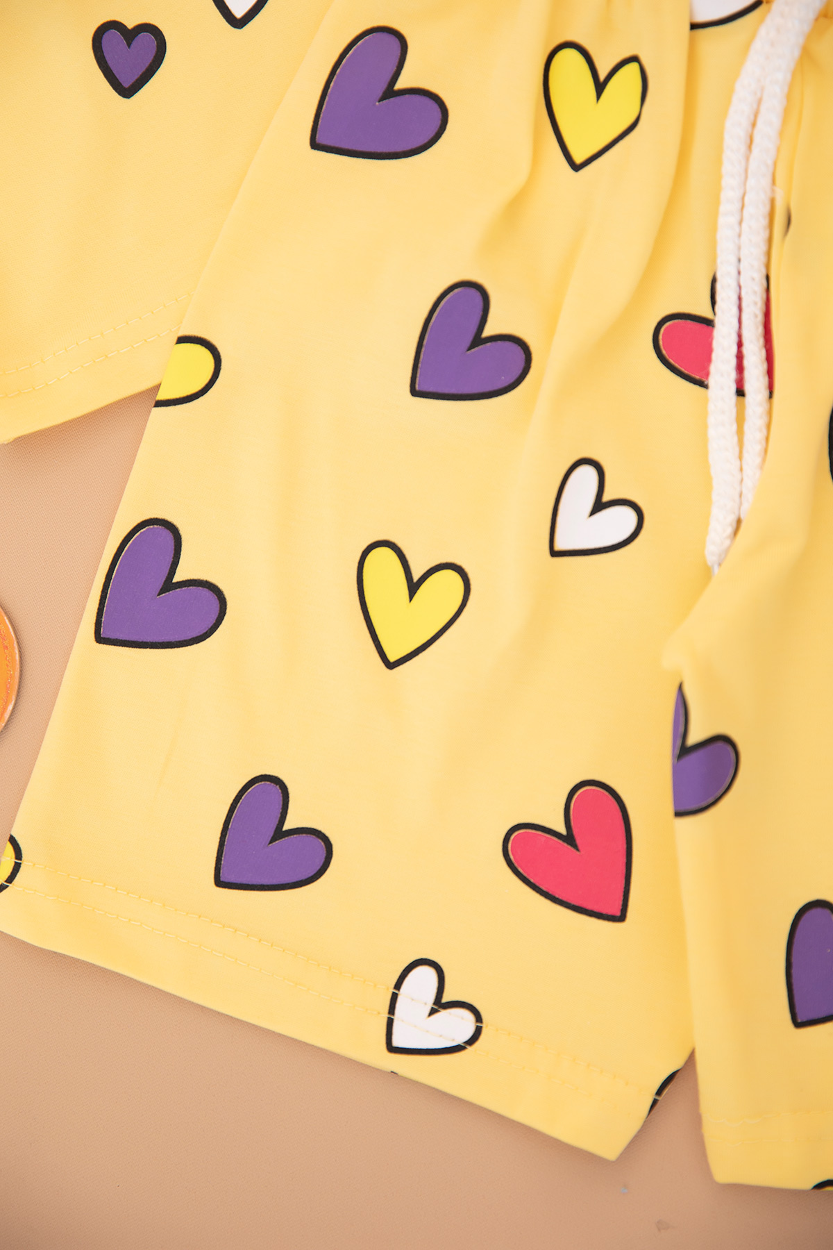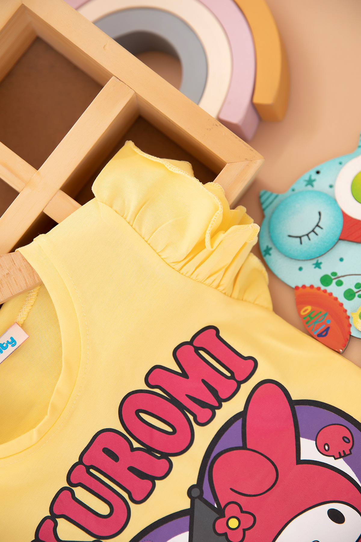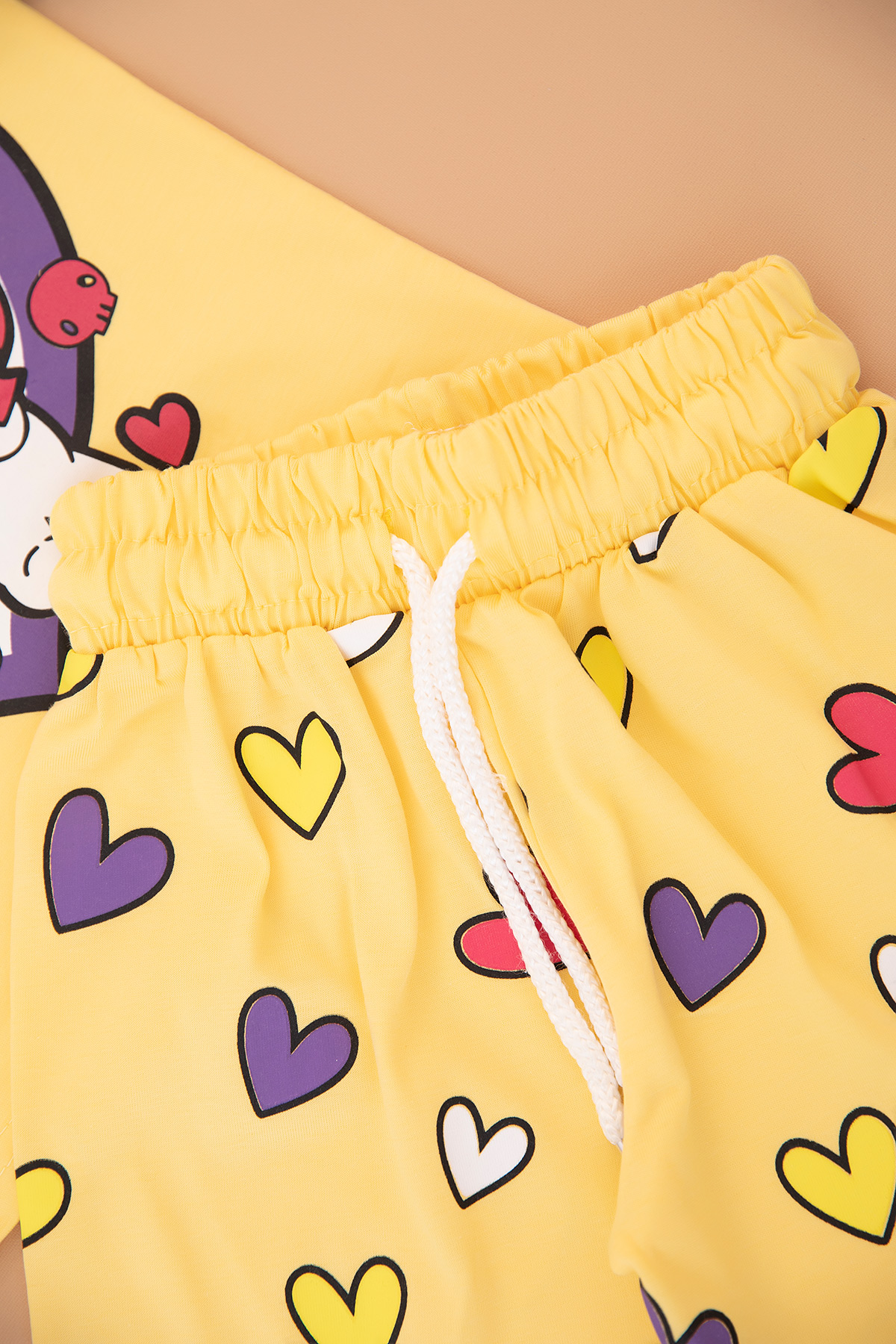 Kız Çocuk Kuromi Kalp Baskılı Şortlu Takım (3-10 Yaş)