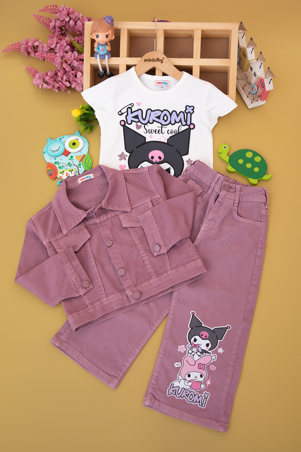 Kız Çocuk Kuromi Kot Ceket Takım - 6447 (3-10 Yaş)