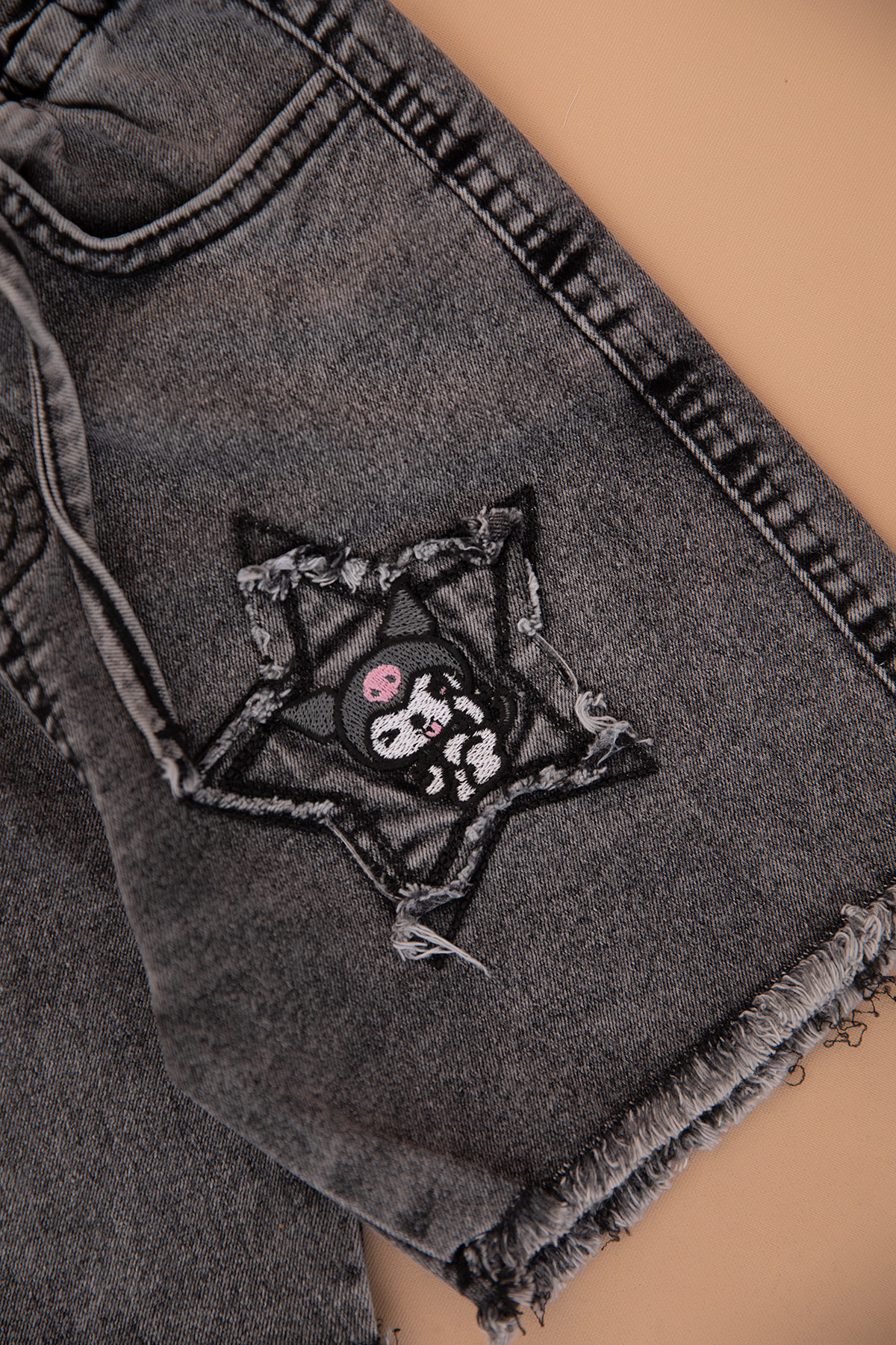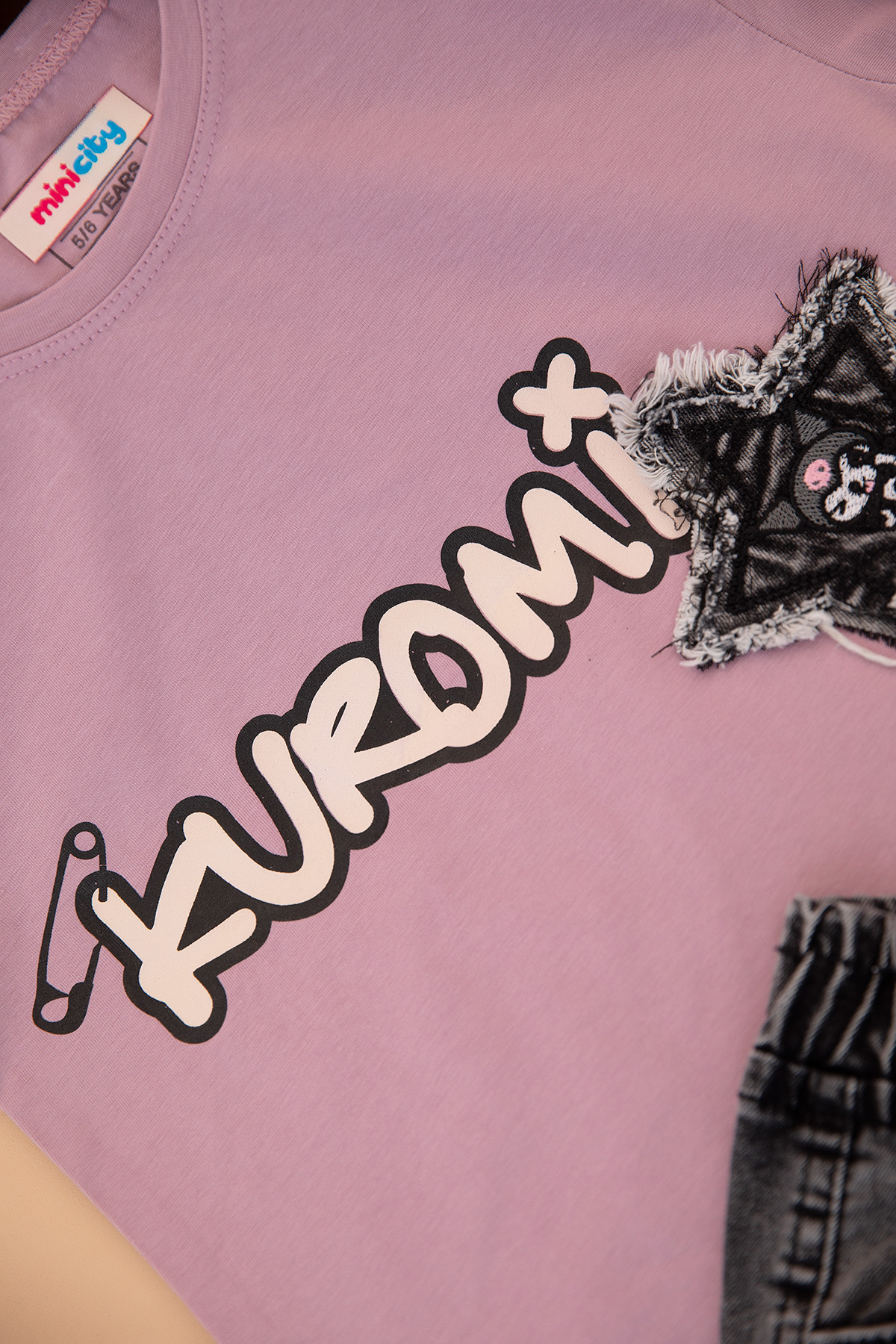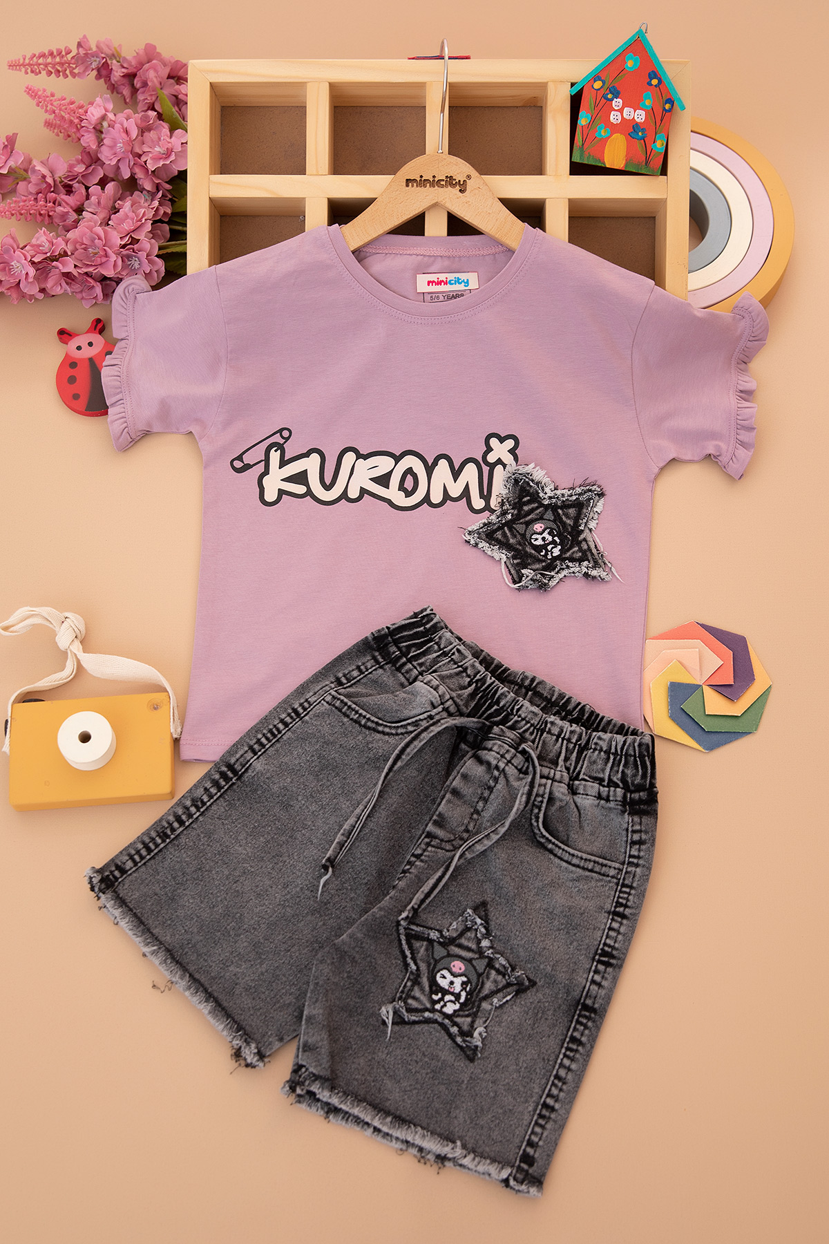 Kız Çocuk Kuromi Kot Şort Etekli Takım - 30840 (5-12 Yaş)