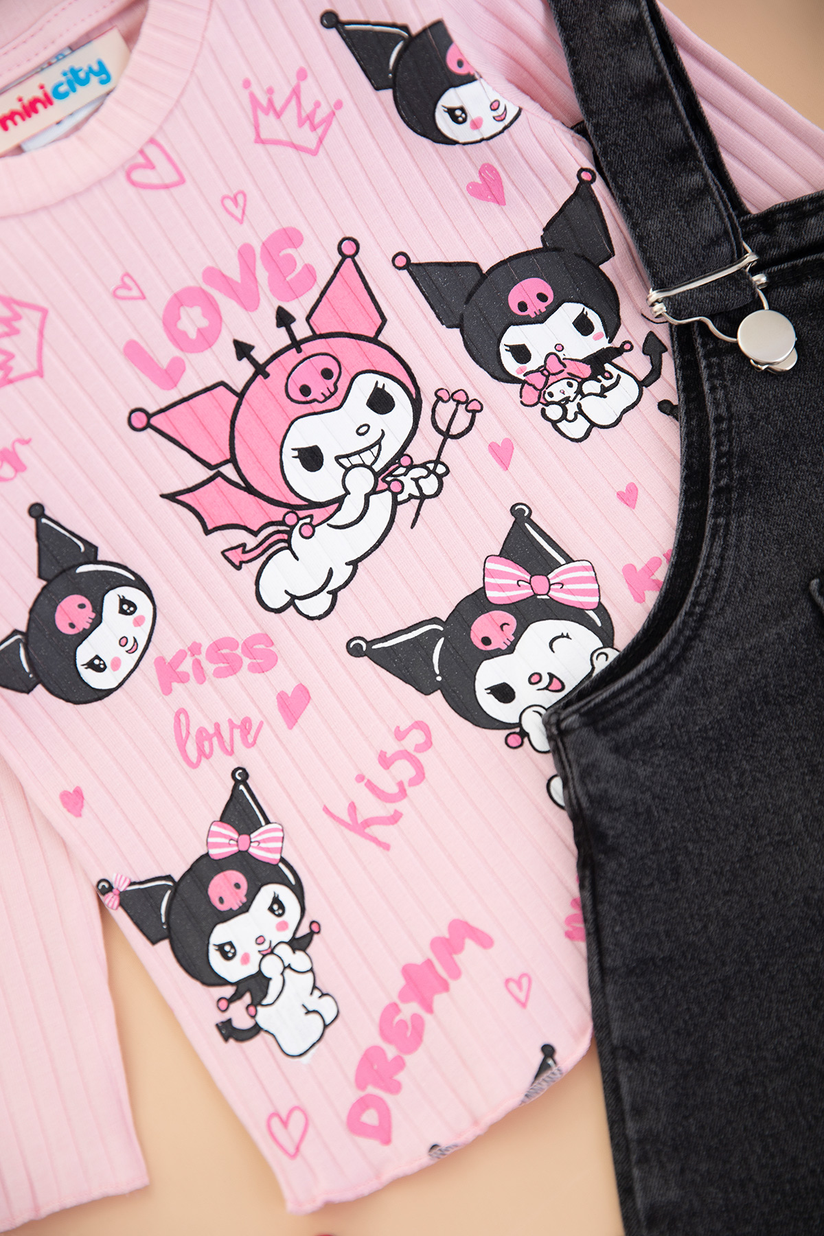 Kız Çocuk Kuromi Love Baskılı Salopet 2 Li Takım - 8159 (2-8 Yaş)