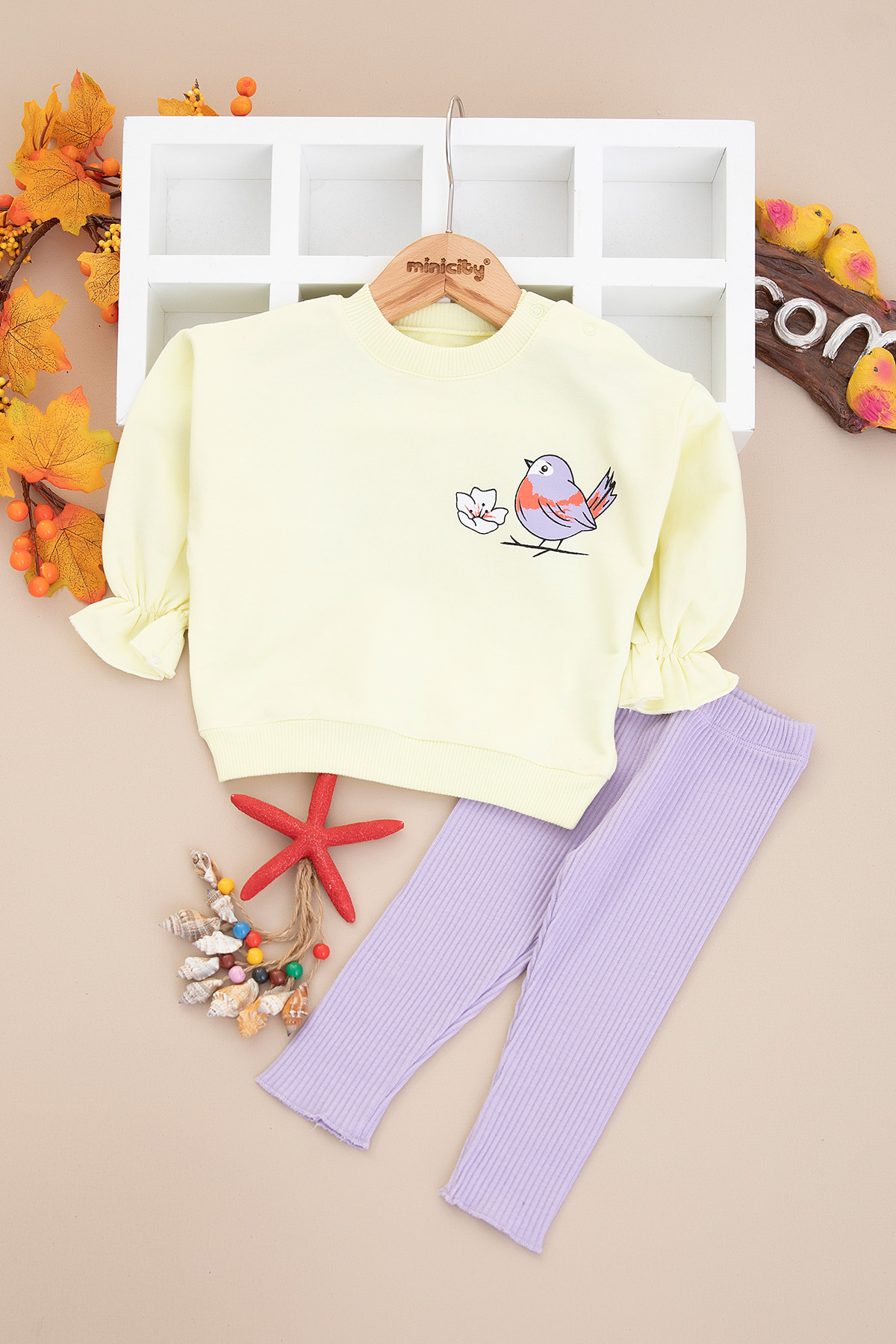 Kız Çocuk Kuş Baskılı Taytlı Takım - 2717 (6-24 Ay)