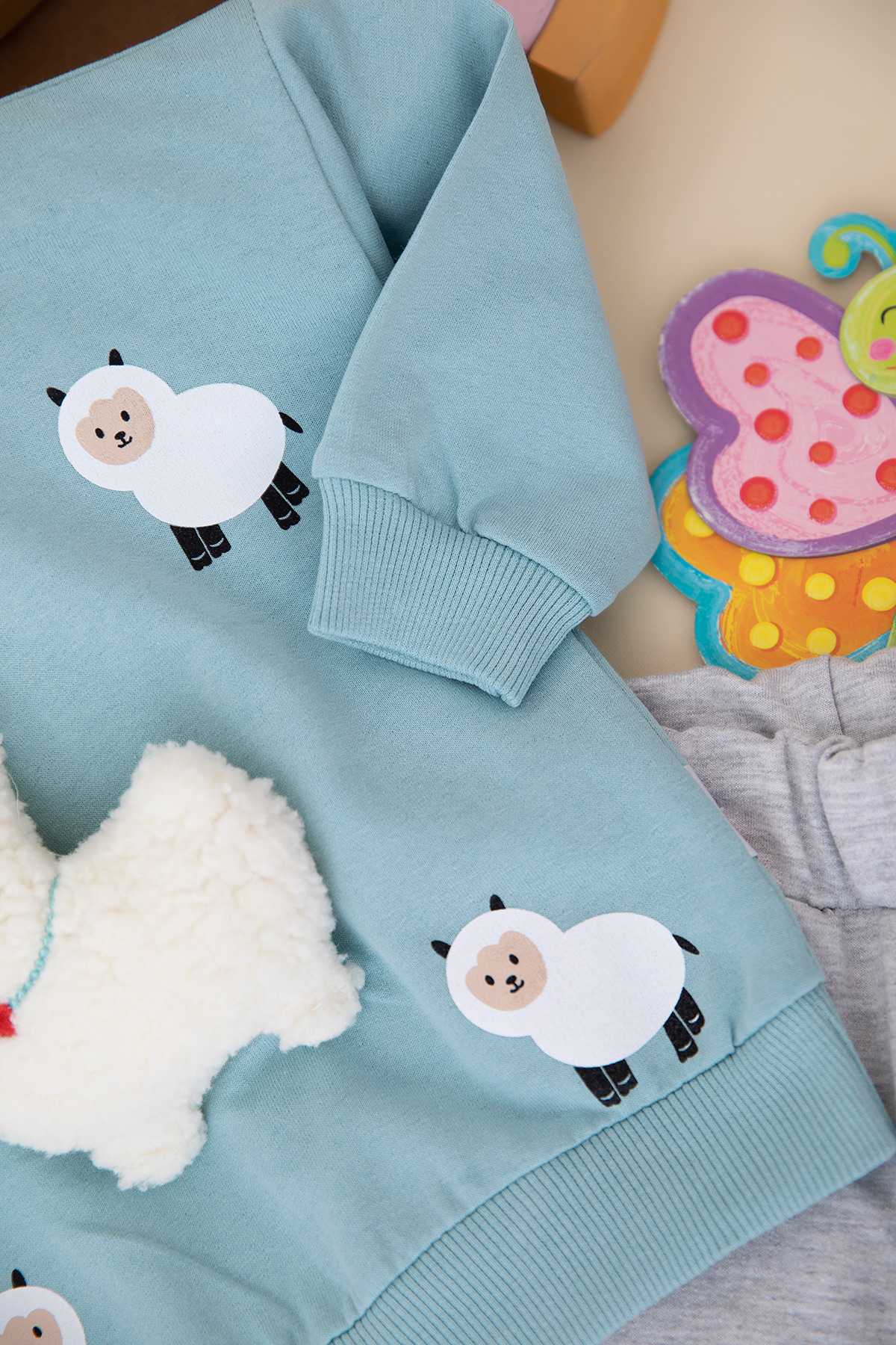 Kız Çocuk Kuzu Figürlü Baskılı Takım - 1038 (1-3 Yaş)