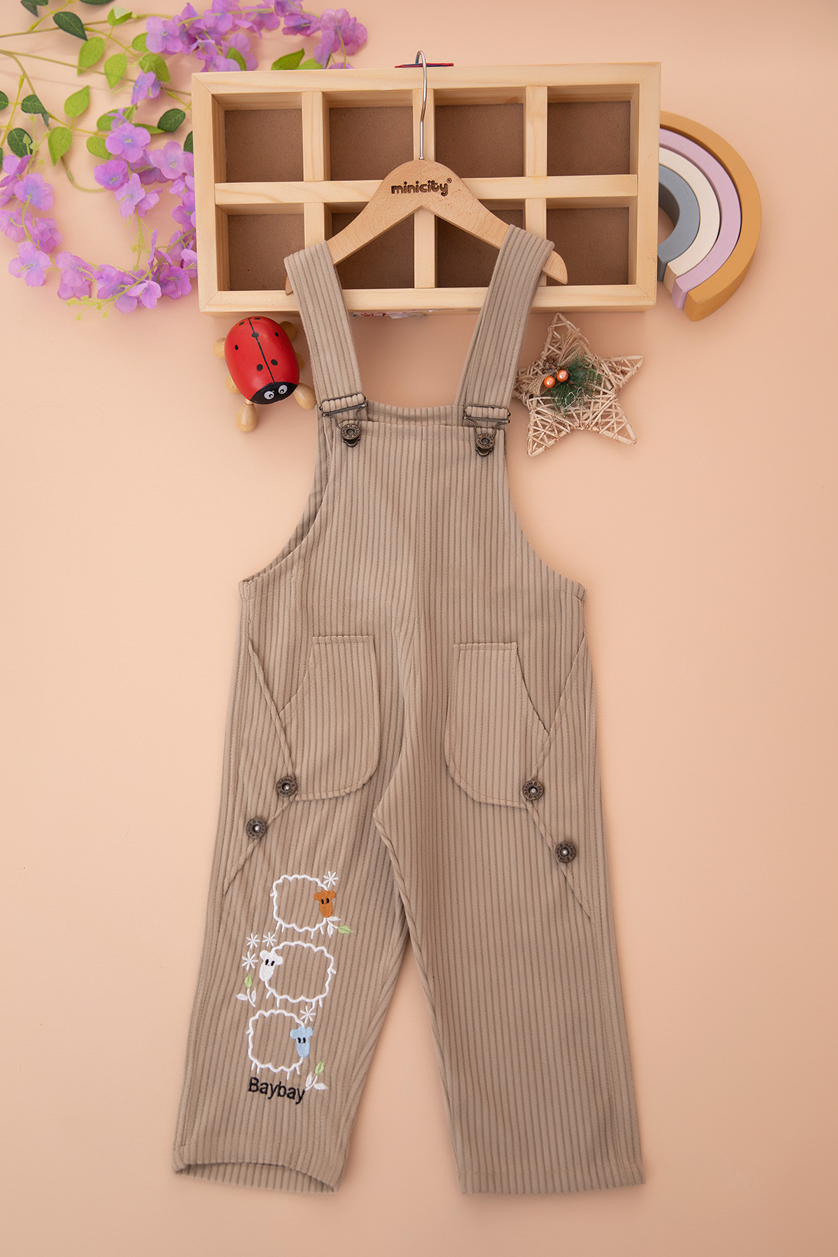 Kız Çocuk Kuzu Nakışlı Kadife Salopet - 2040 (2-6 Yaş)