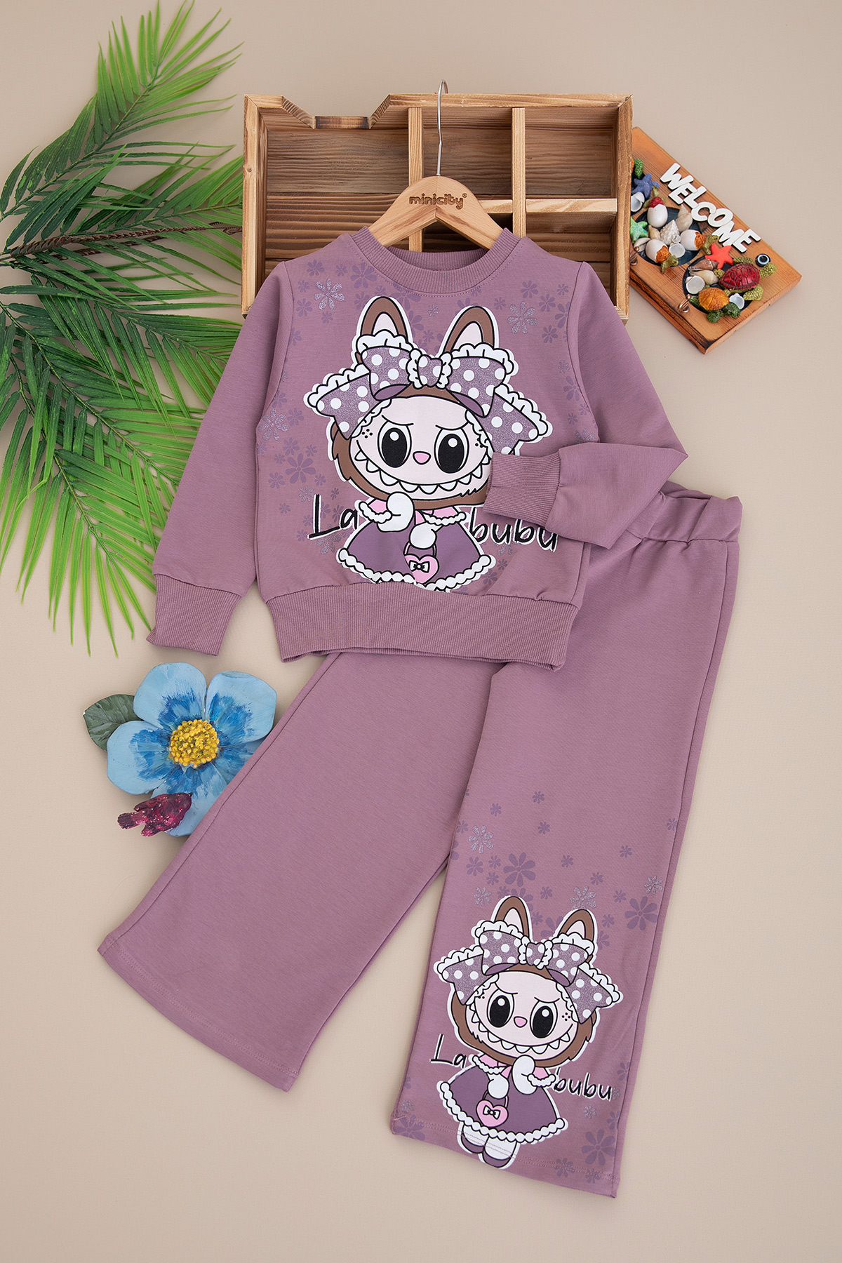 Kız Çocuk Labubu Baskılı Bol Paça Takım - 8186 (3-10 Yaş)