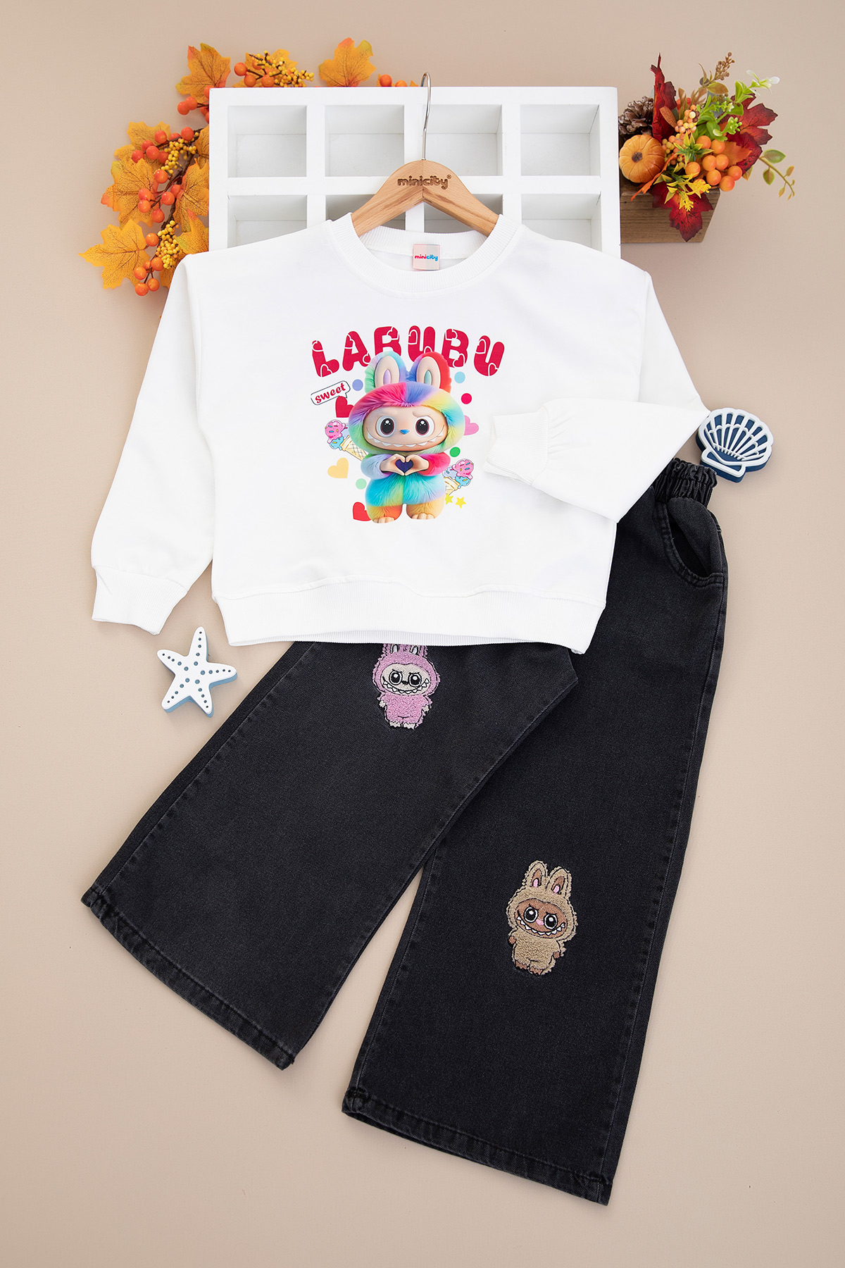 Kız Çocuk Labubu Baskılı Kot Pantolon Takım - 2621 (6-10 Yaş)