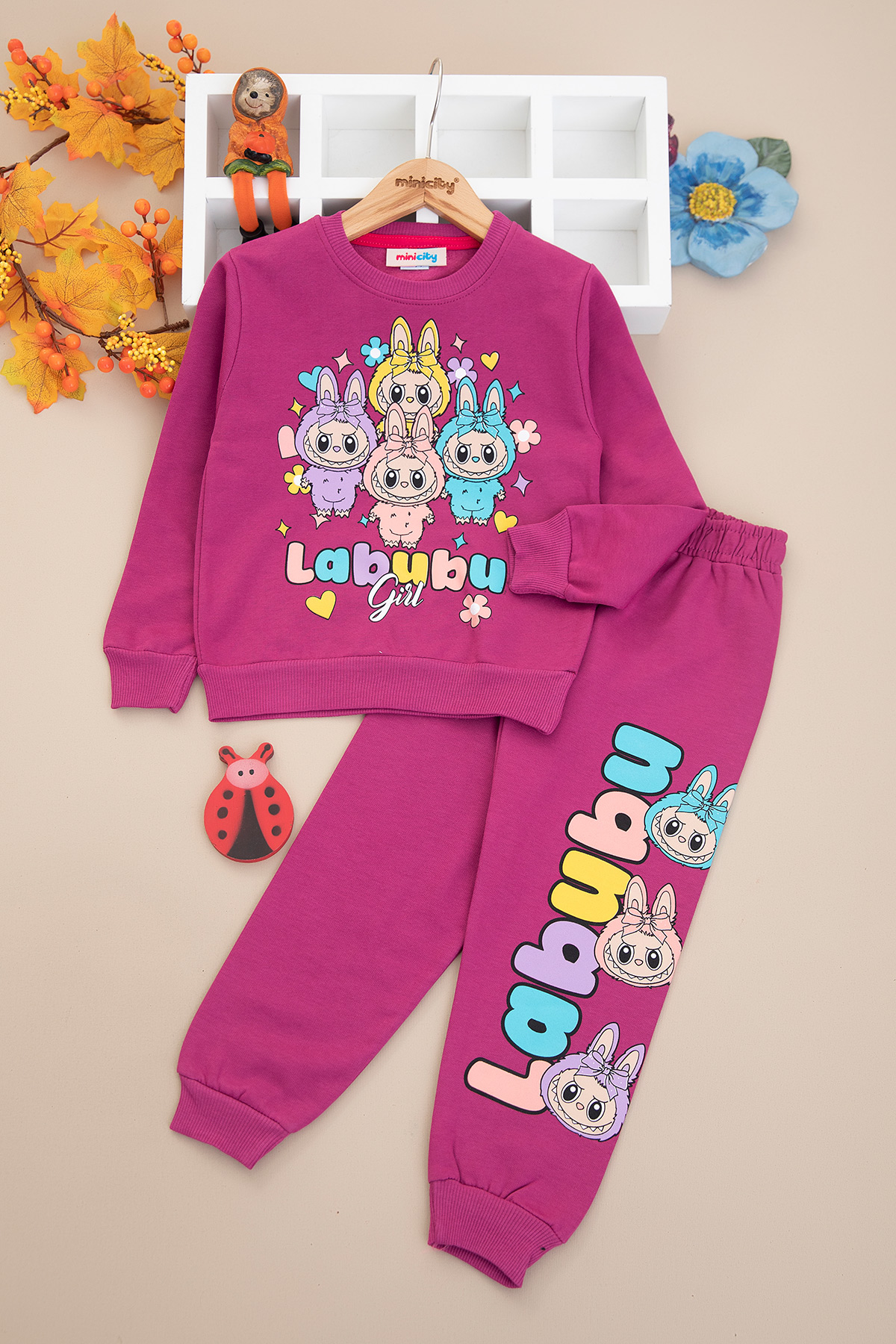 Kız Çocuk Labubu Baskılı Şardonlu Takım - 6015 (4-10 Yaş)