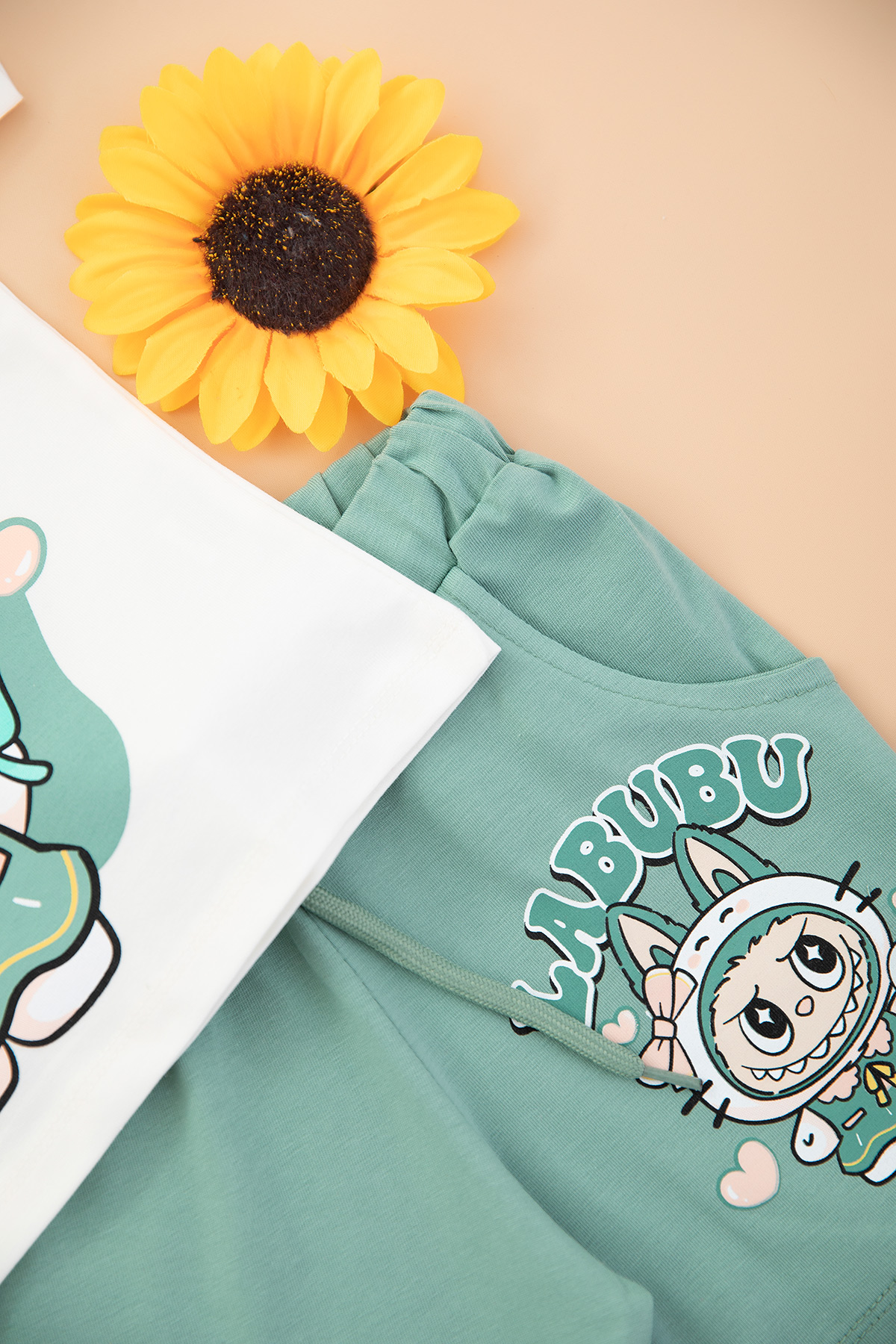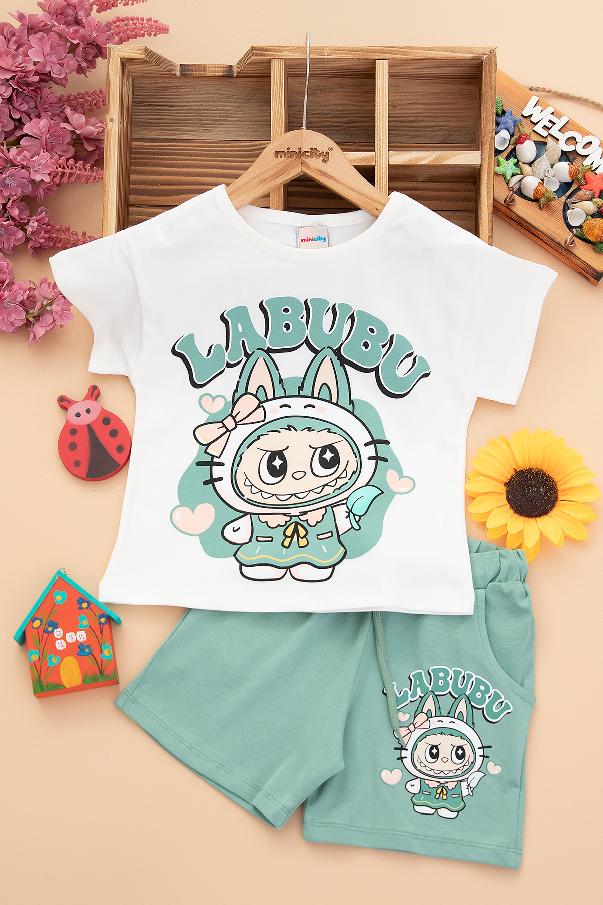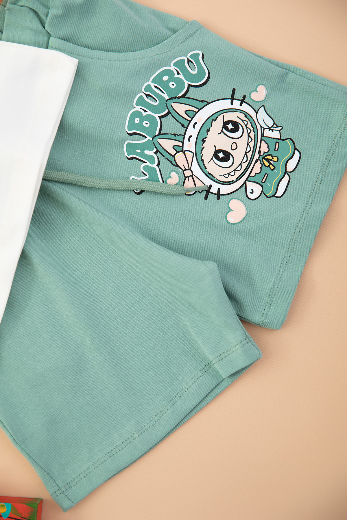 Kız Çocuk Labubu Baskılı Şortlu Takım - 7572 (3-10 Yaş)