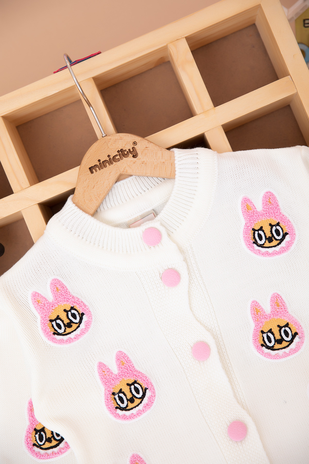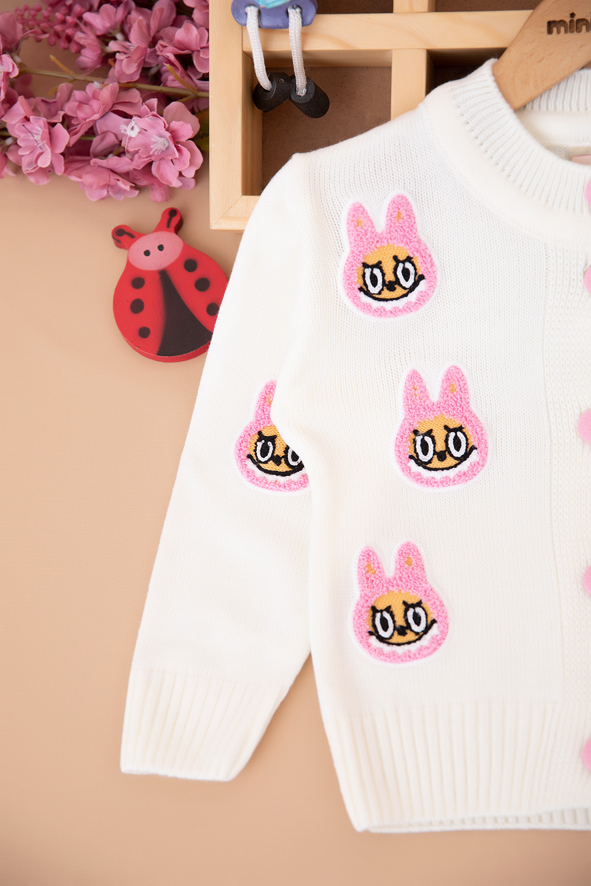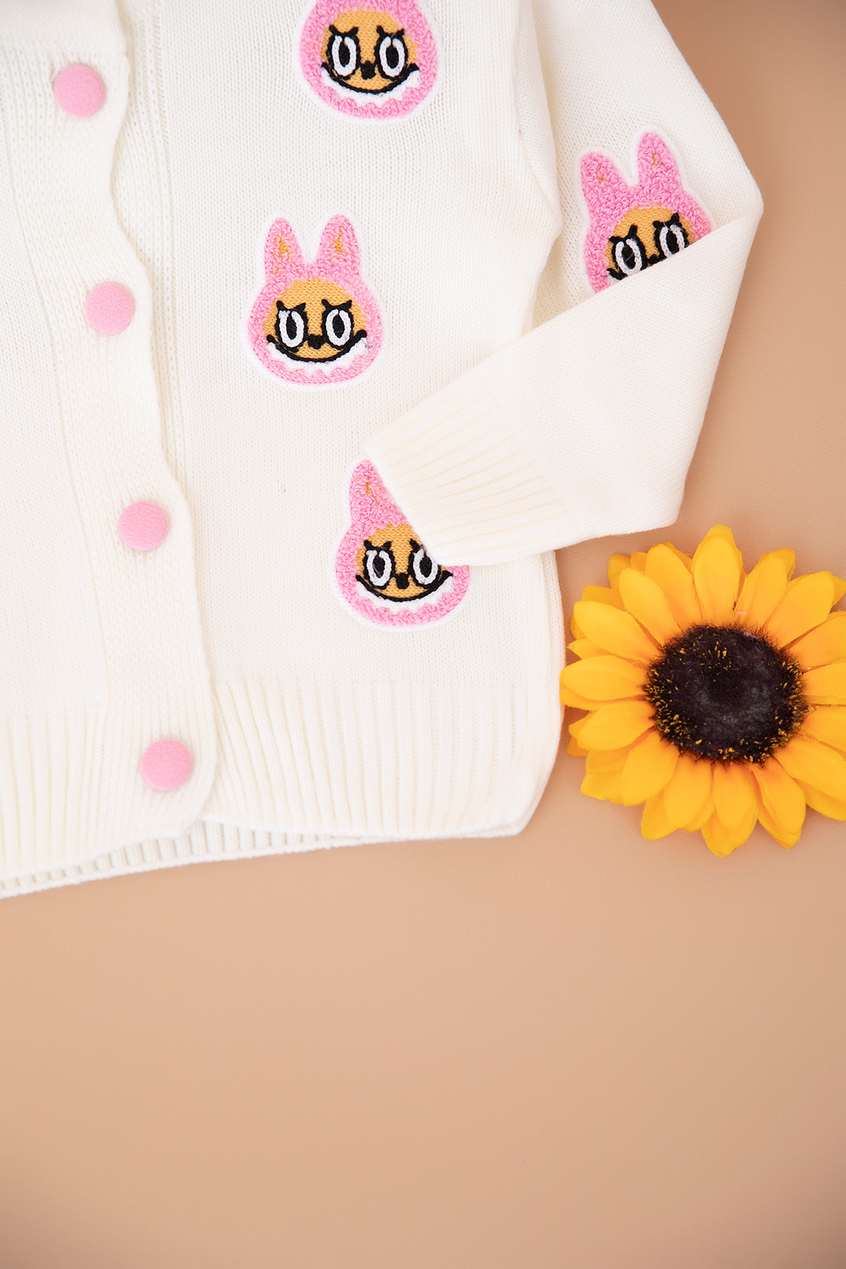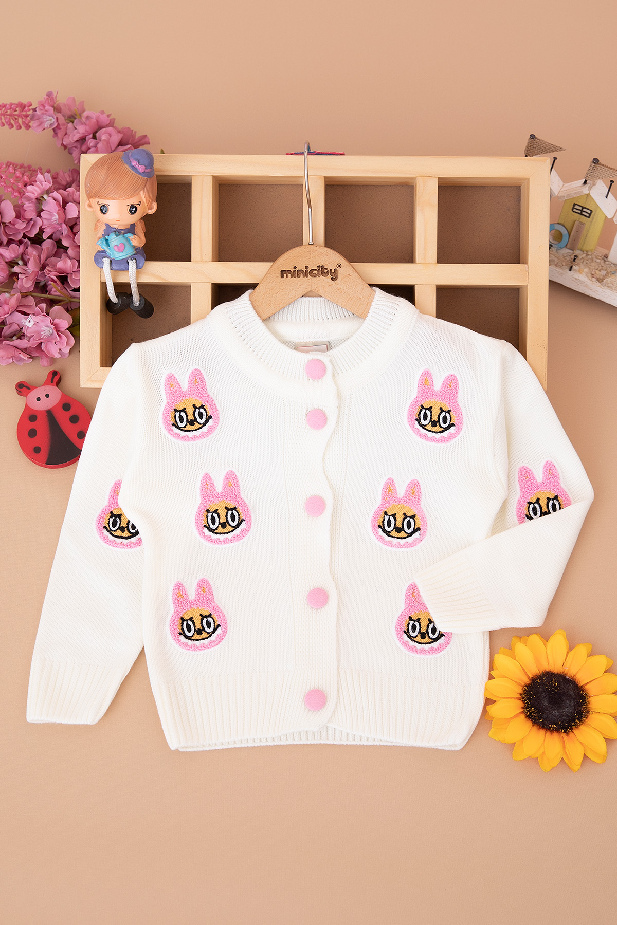 Kız Çocuk Labubu Nakışlı Düğmeli Hırka (2-8 Yaş)