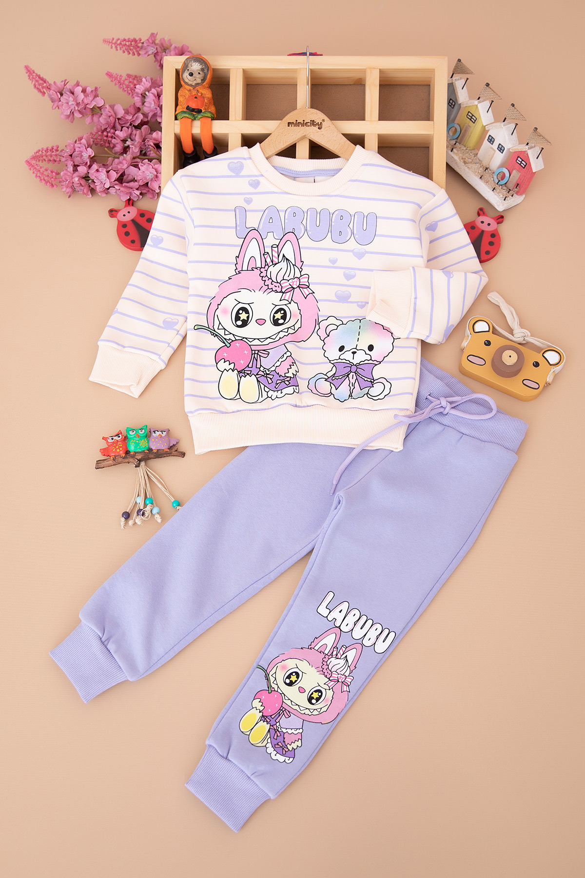 Kız Çocuk Labubu Şardonlu Eşofman Takımı - 8249 (3-10 Yaş)