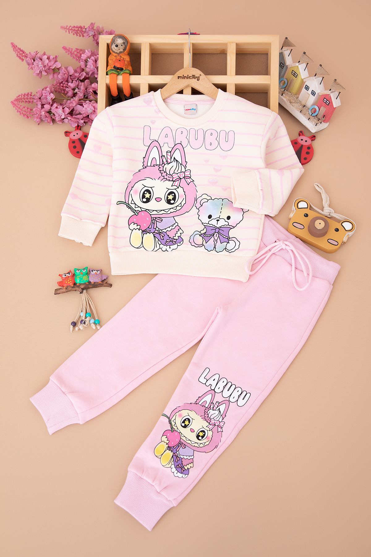Kız Çocuk Labubu Şardonlu Eşofman Takımı - 8249 (3-10 Yaş)