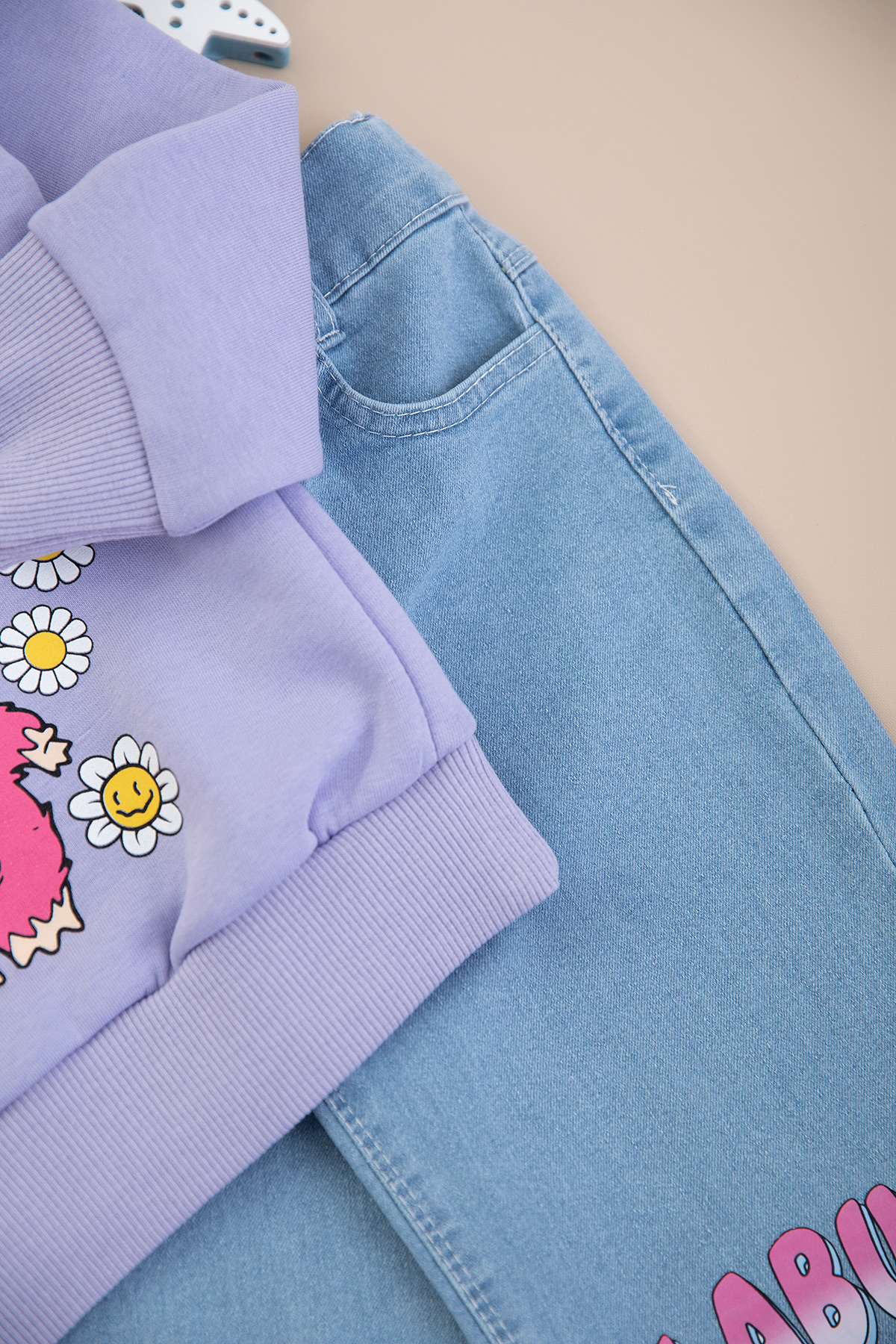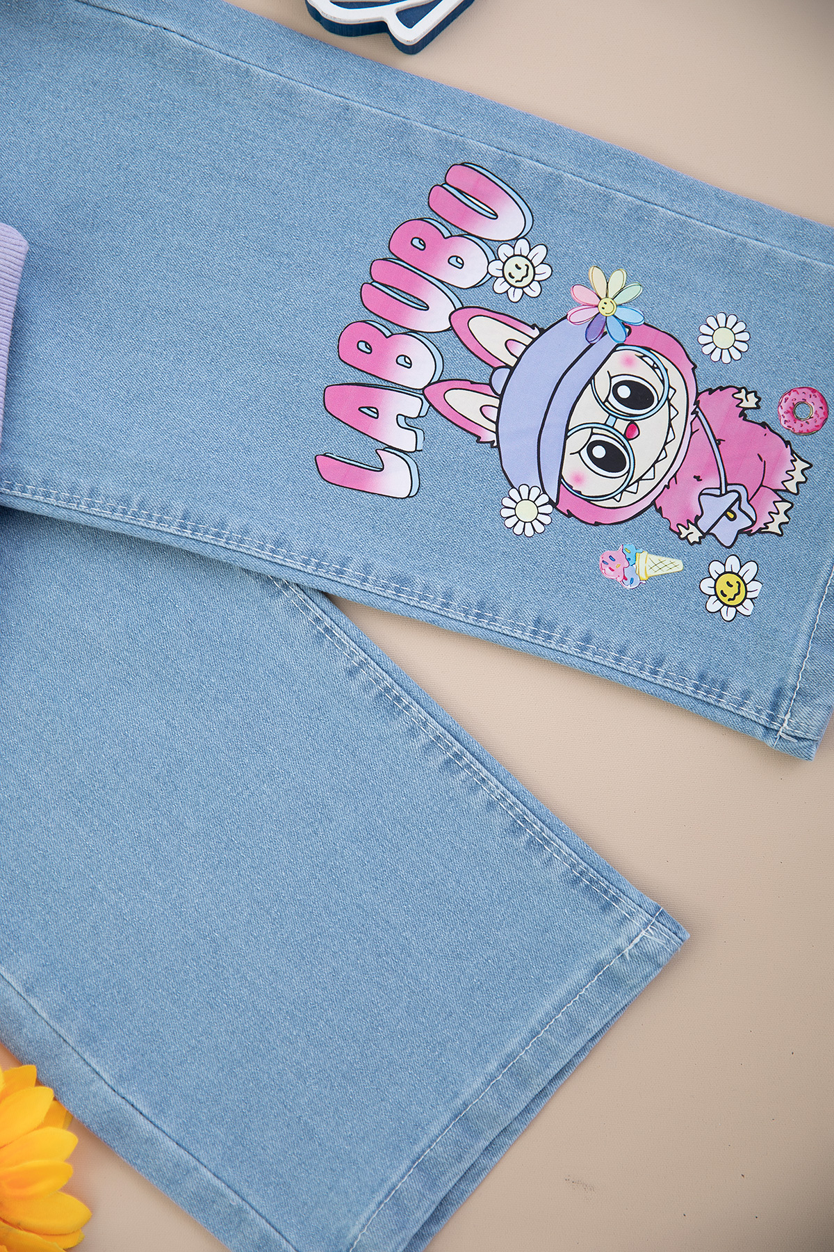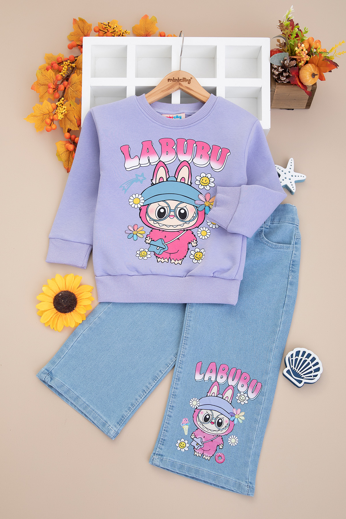 Kız Çocuk Labubu Şardonlu Kot Pantolon Takım - 8278 (3-10 Yaş)
