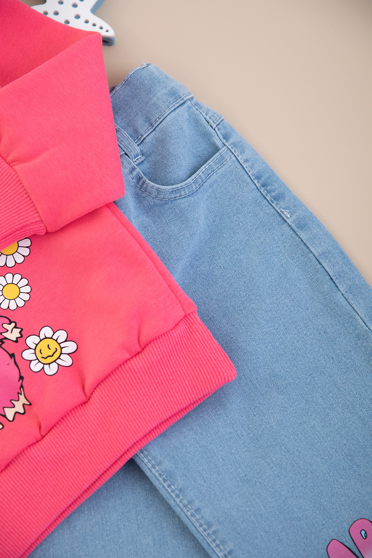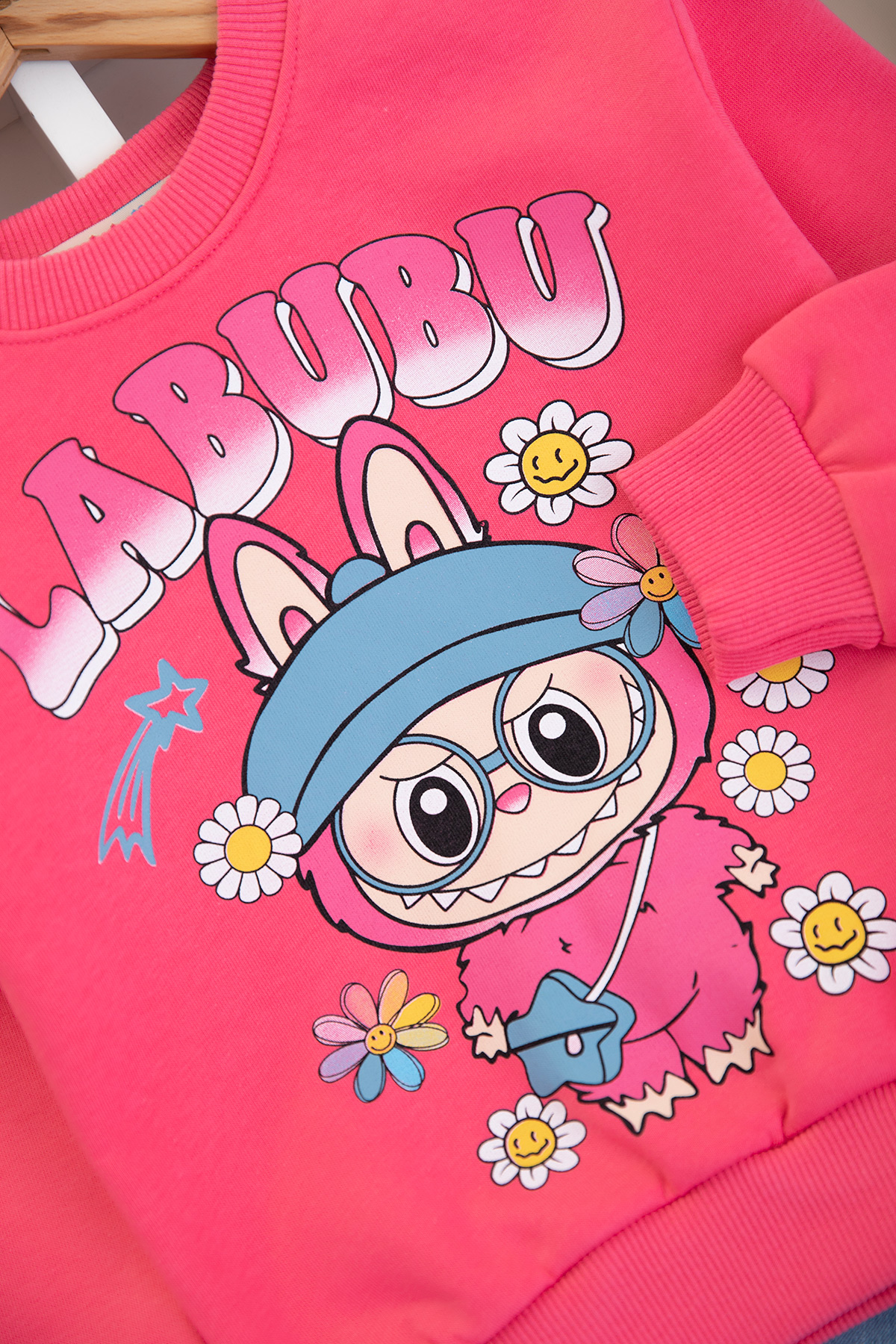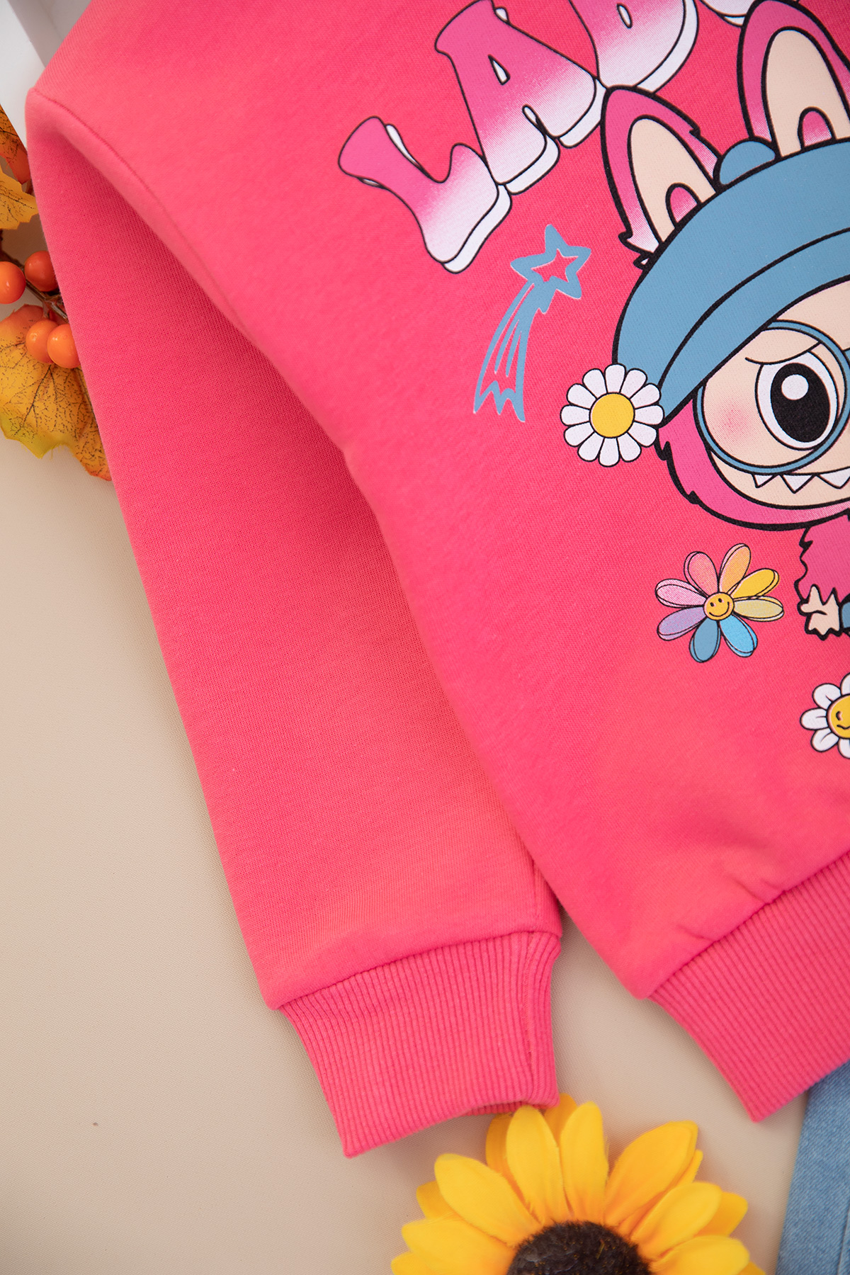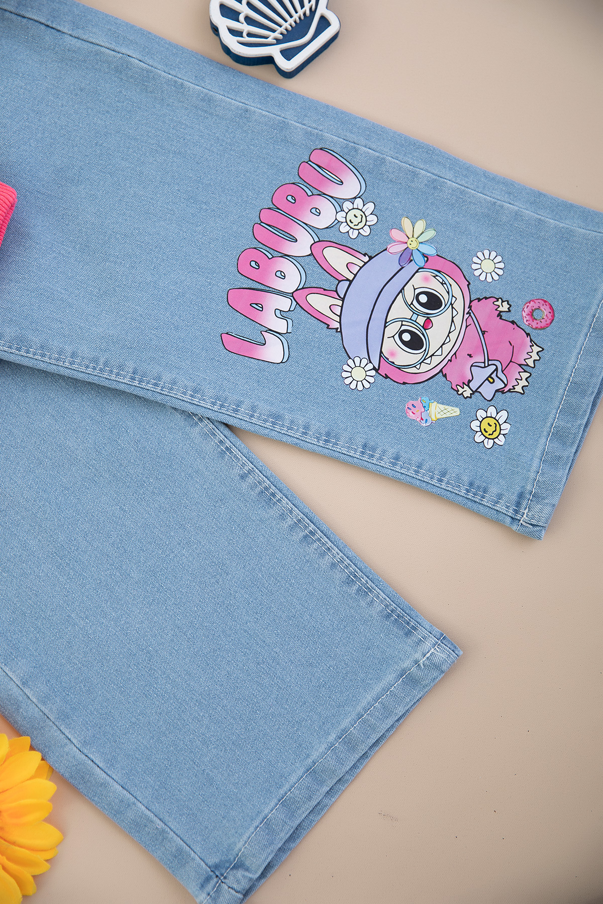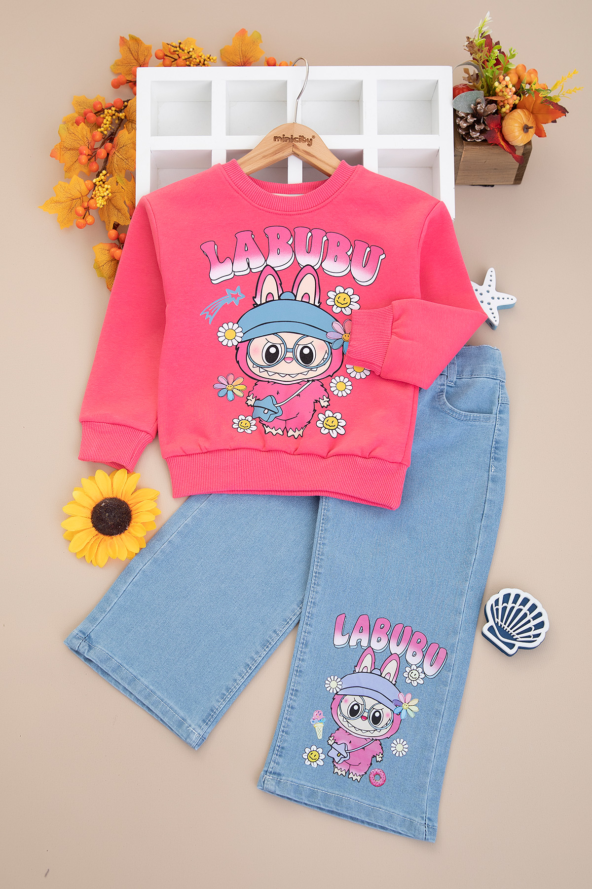 Kız Çocuk Labubu Şardonlu Kot Pantolon Takım - 8278 (3-10 Yaş)