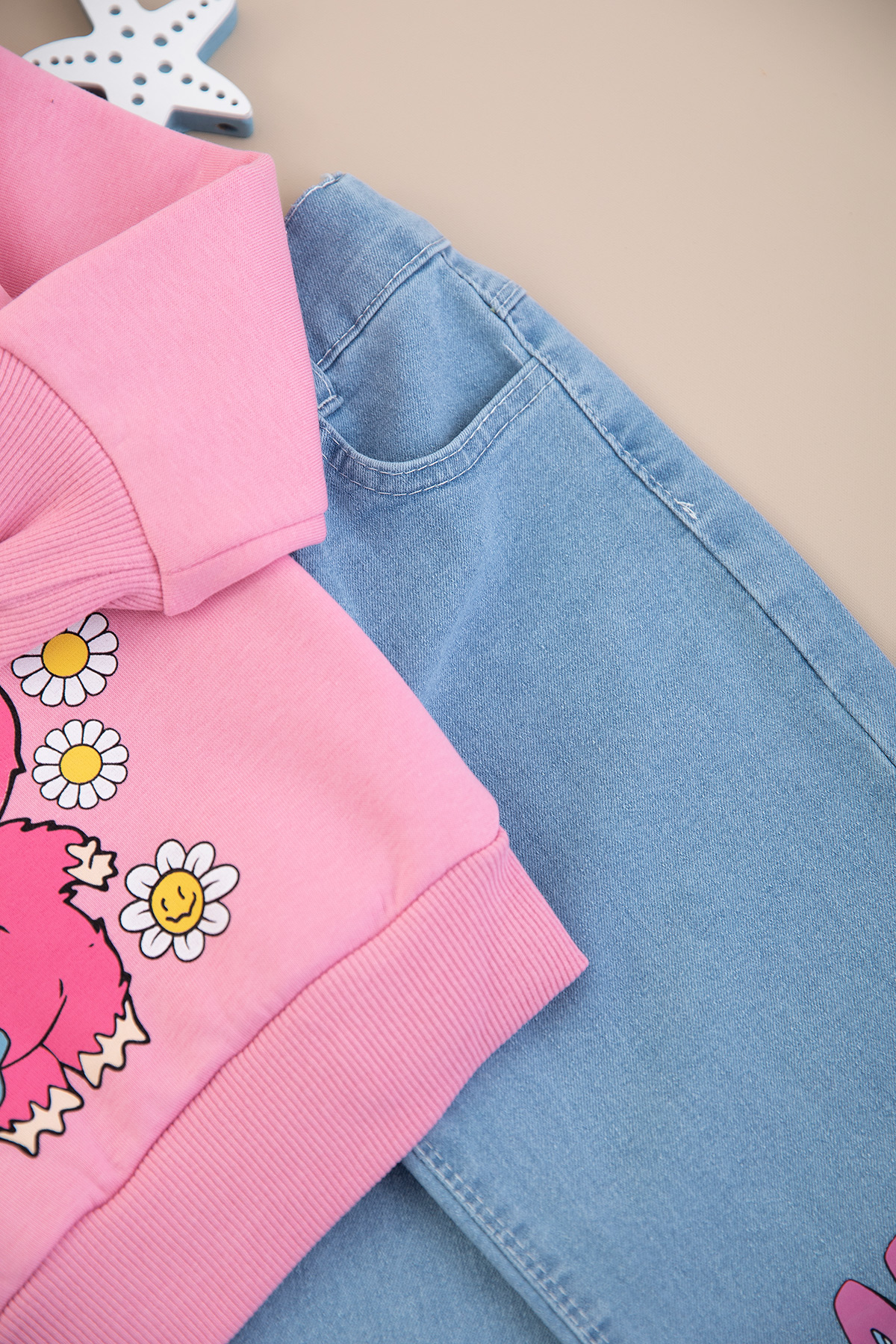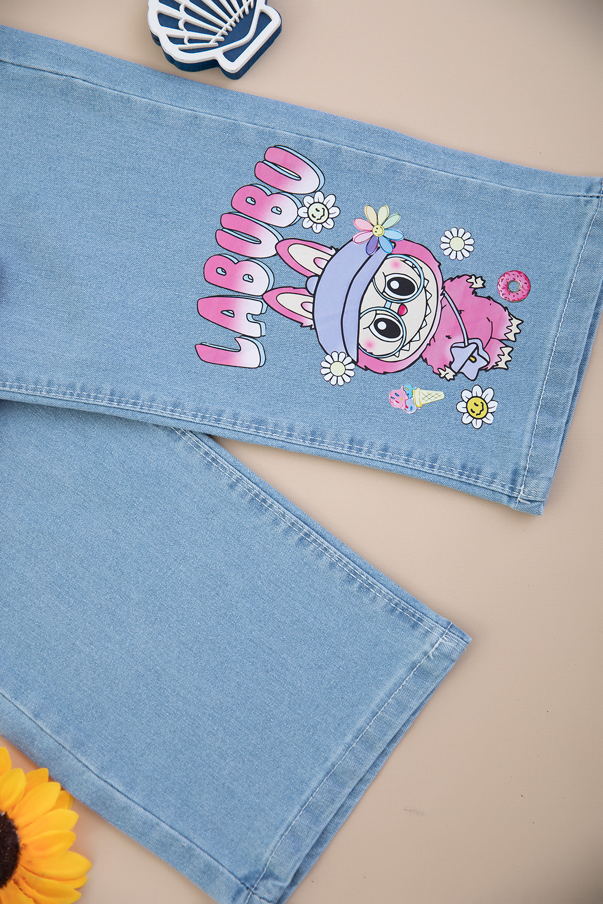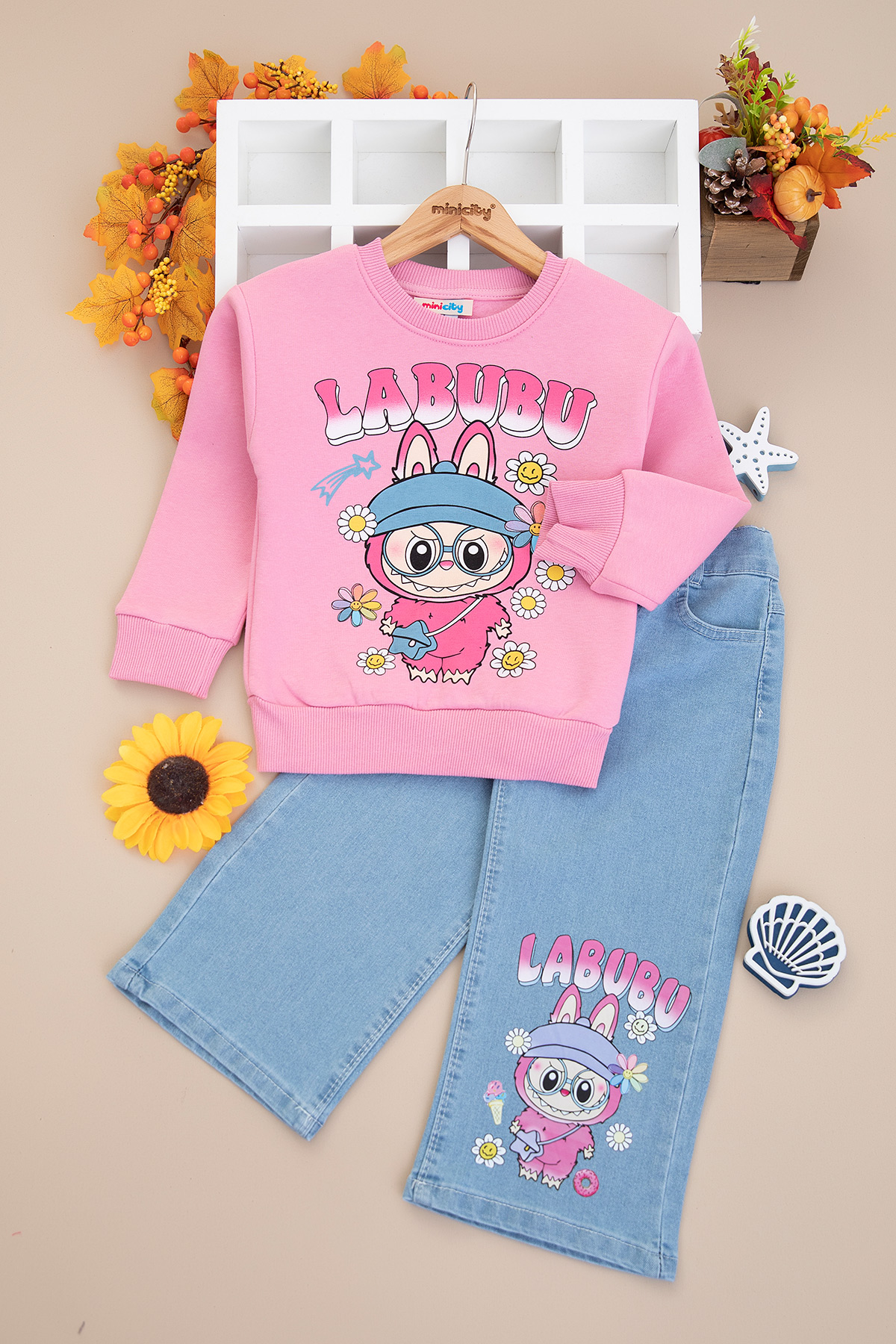 Kız Çocuk Labubu Şardonlu Kot Pantolon Takım - 8278 (3-10 Yaş)