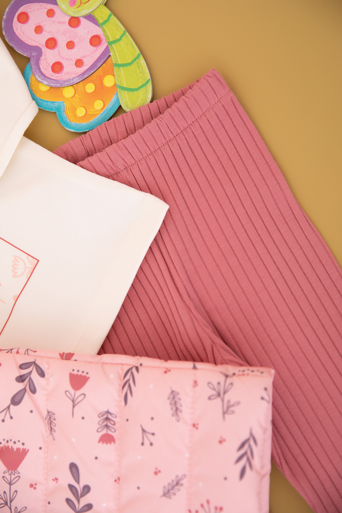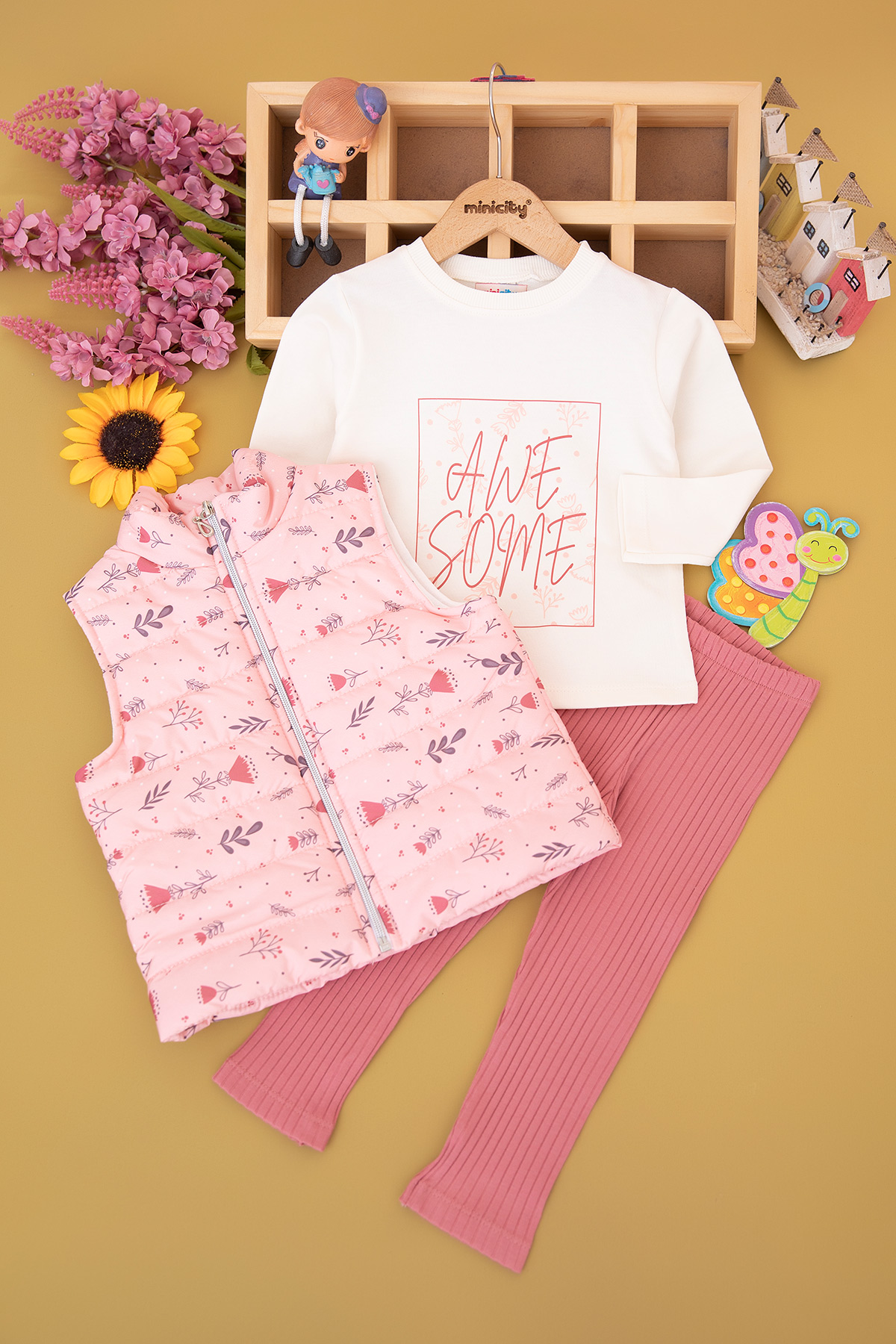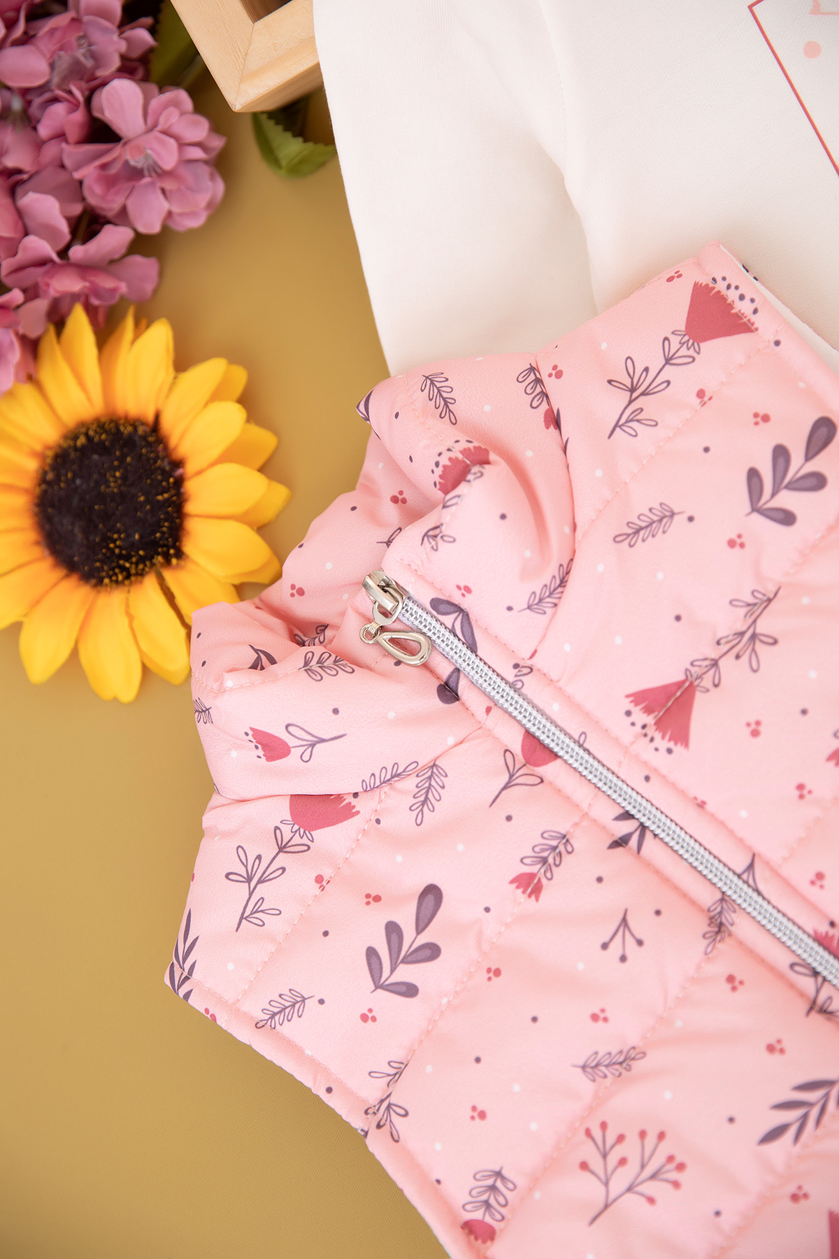 Kız Çocuk Lale Baskılı Yelekli Takım - 3694 (3-6 Yaş)