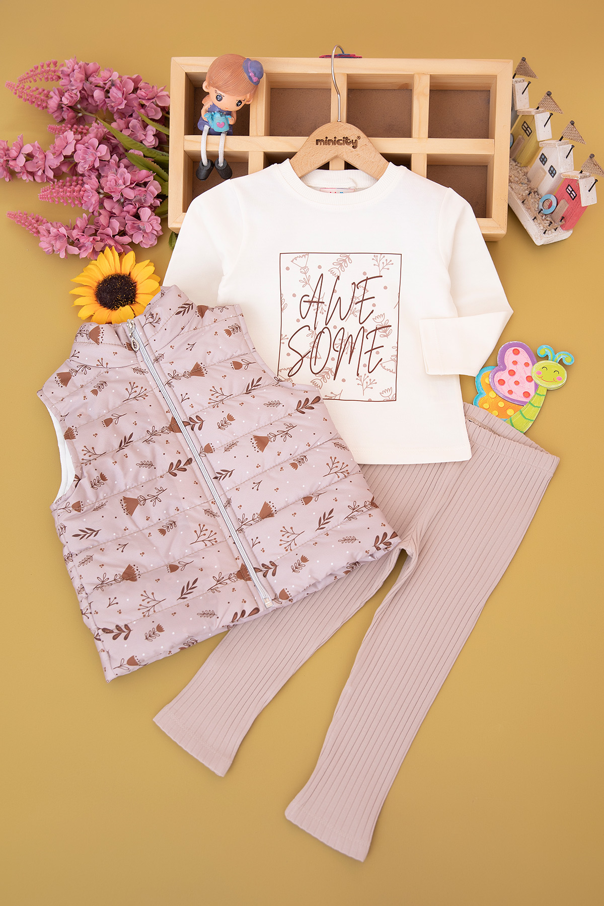 Kız Çocuk Lale Baskılı Yelekli Takım - 3694 (3-6 Yaş)