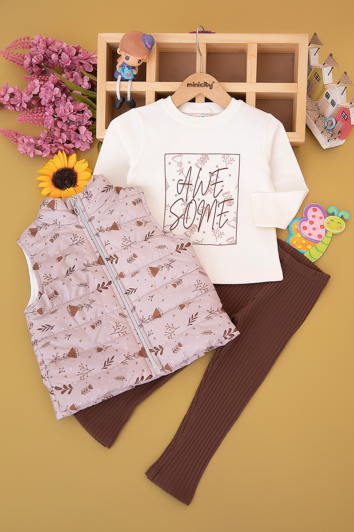 Kız Çocuk Lale Baskılı Yelekli Takım - 3694 (3-6 Yaş)