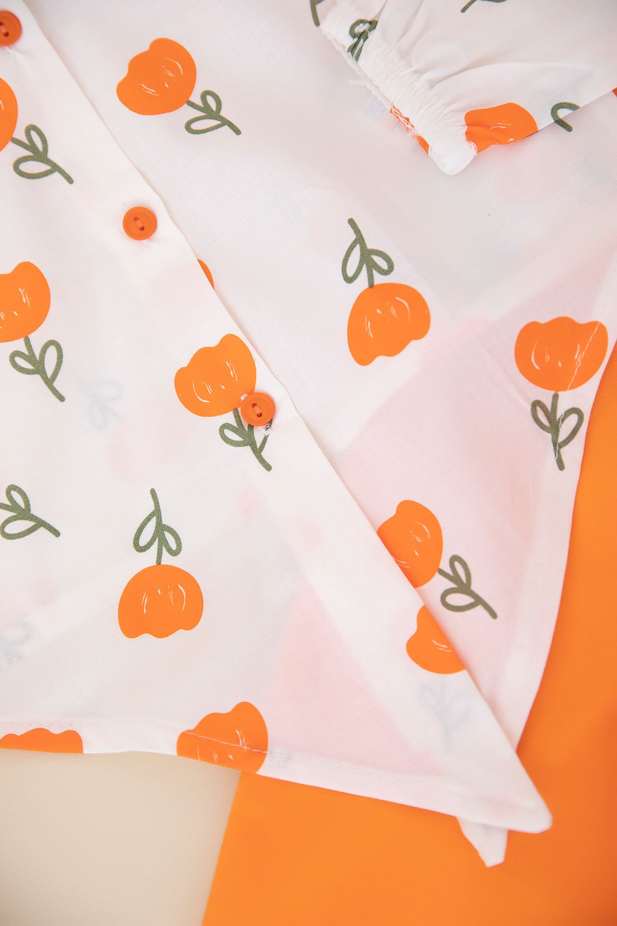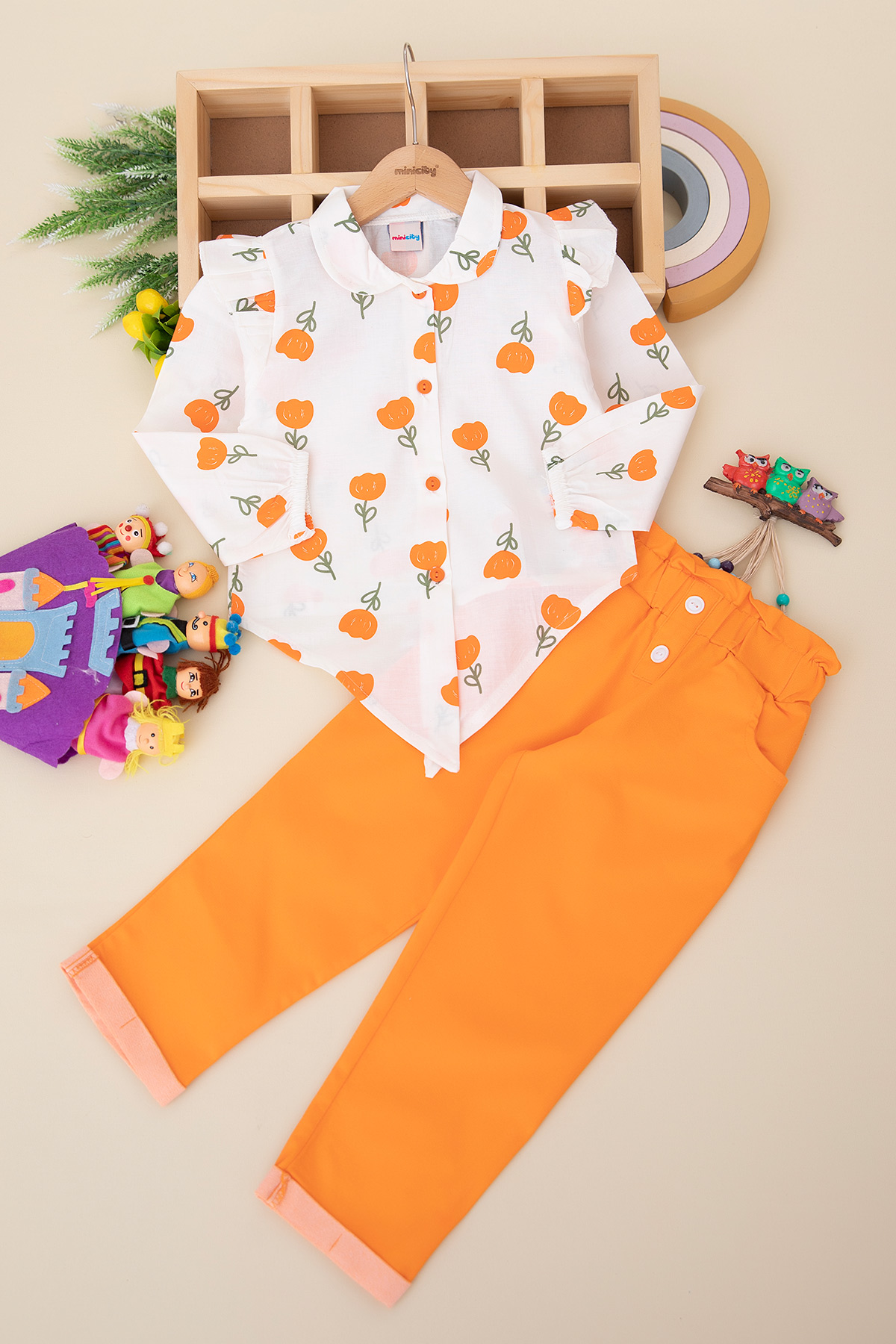 Kız Çocuk Lale Desenli Döküm Kumaş Takım - 24134 (3-6 Yaş)