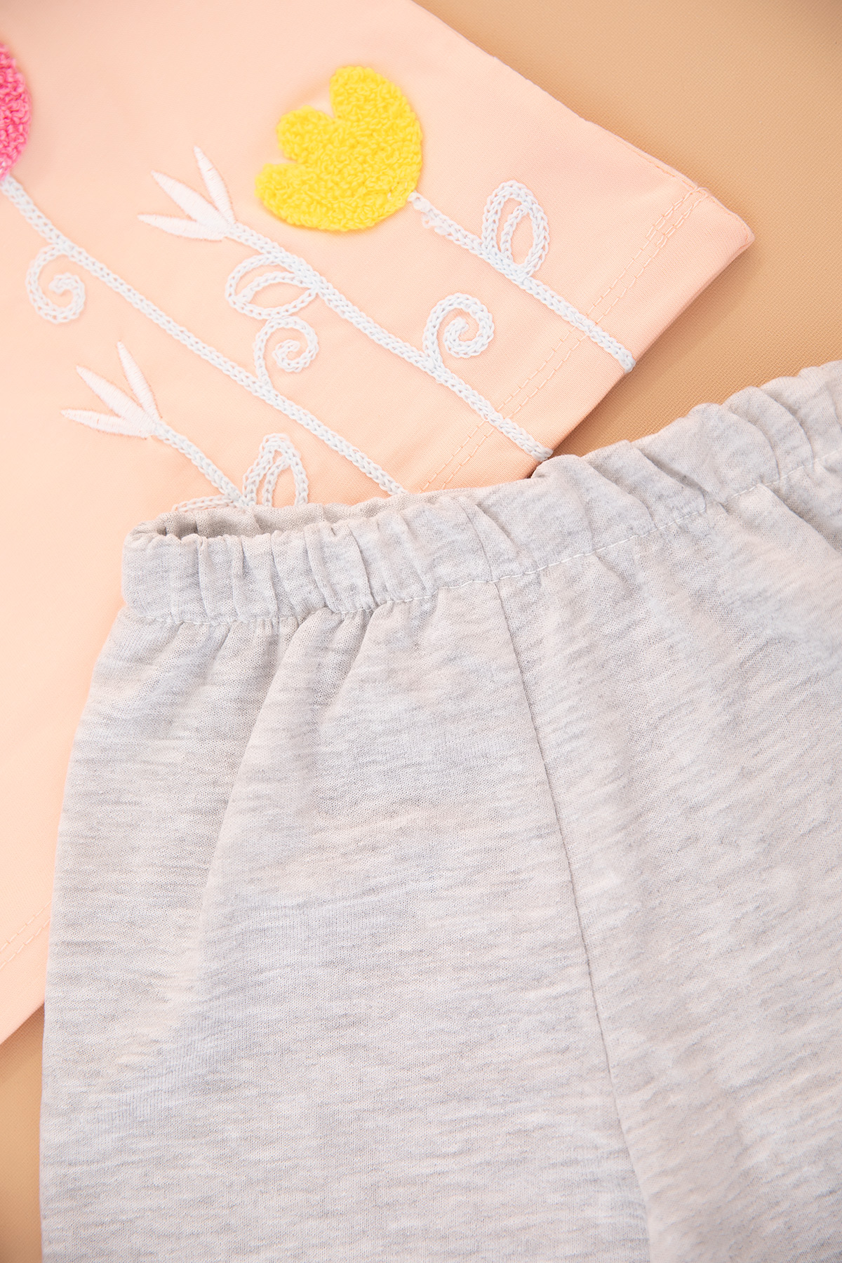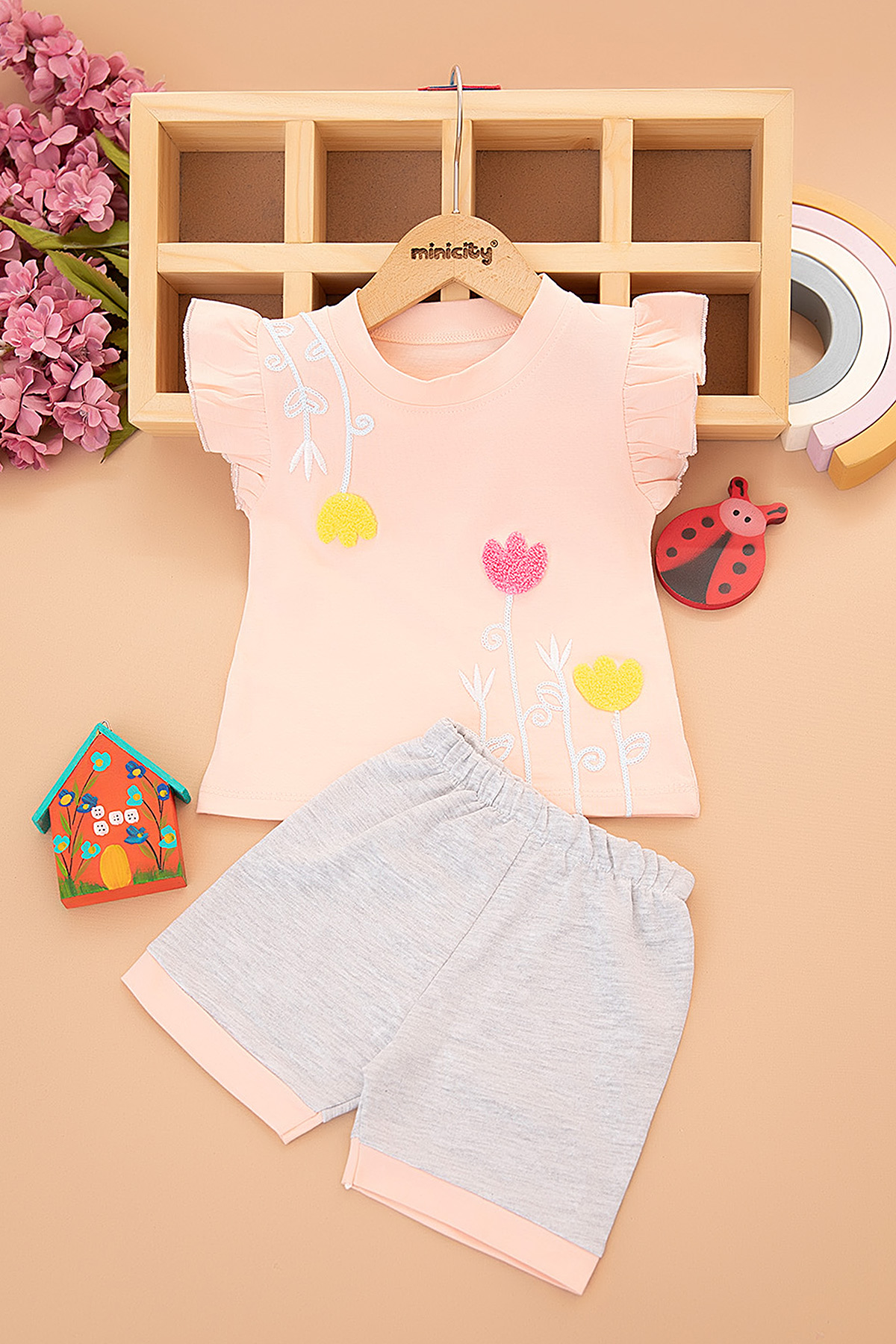 Kız Çocuk Lale Nakışlı Şortlu Takım - 3022 (1-3 Yaş)