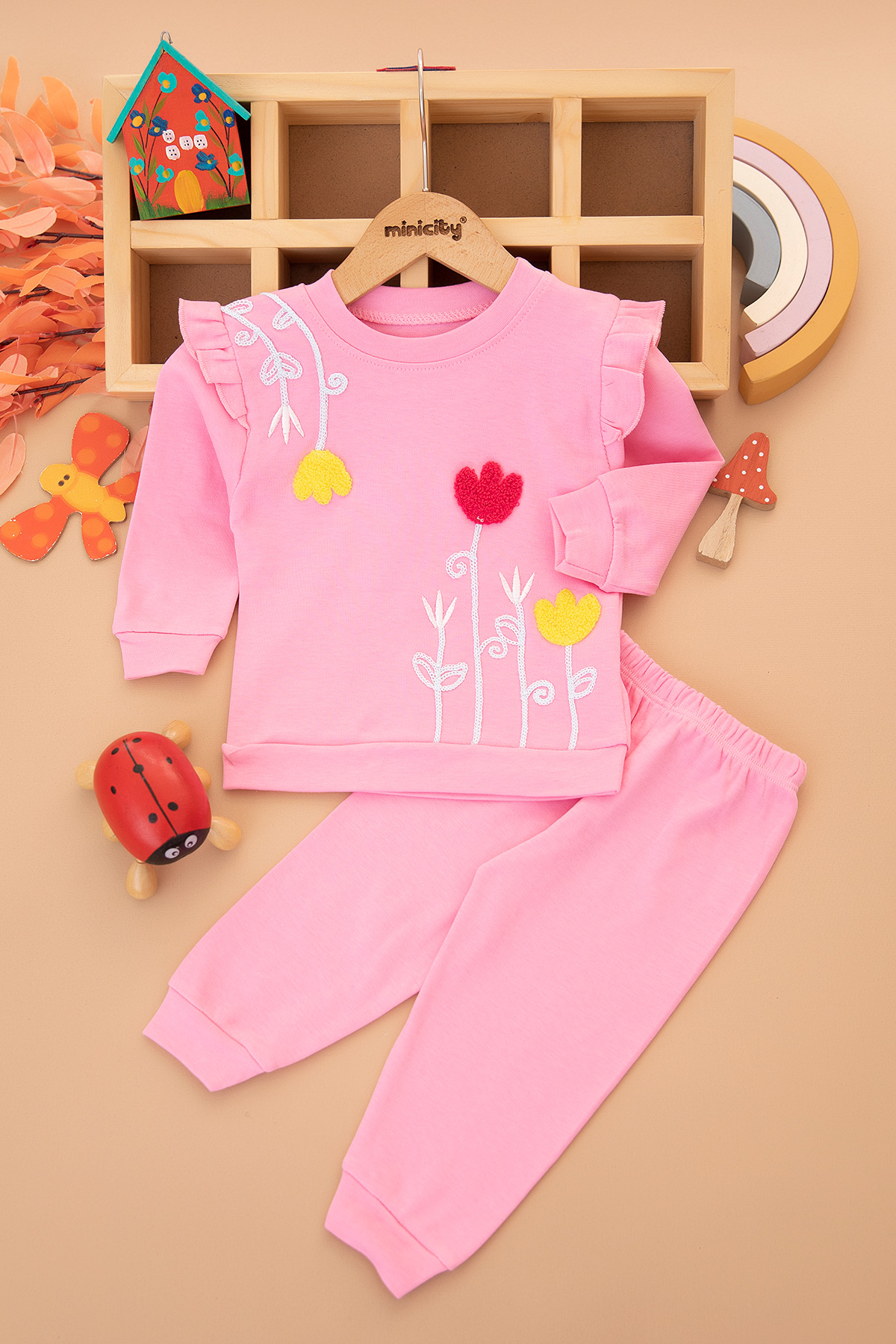 Kız Çocuk Lale Nakışlı Takım - 1077 (1-3 Yaş)