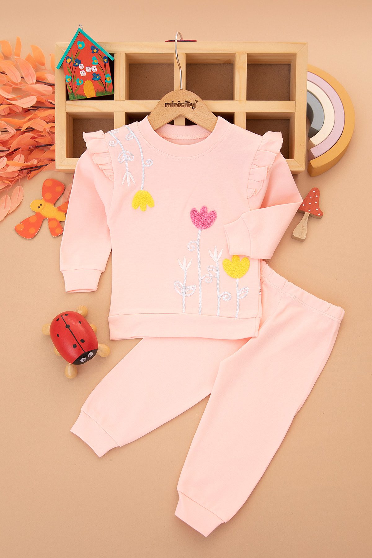 Kız Çocuk Lale Nakışlı Takım - 1077 (1-3 Yaş)