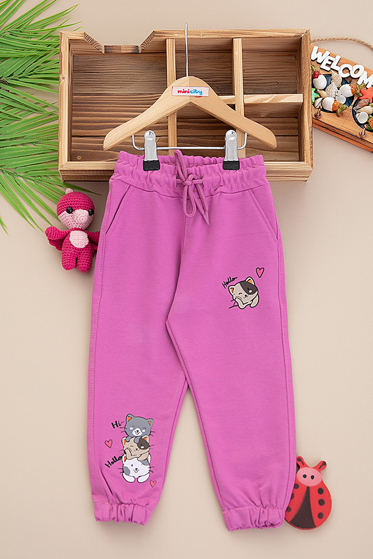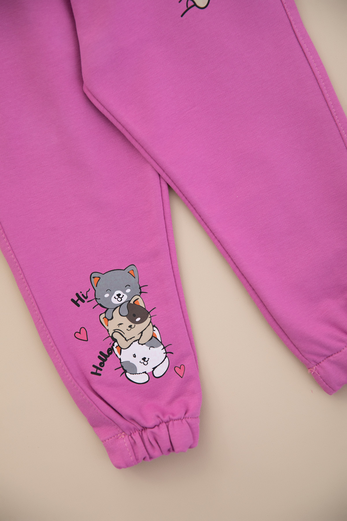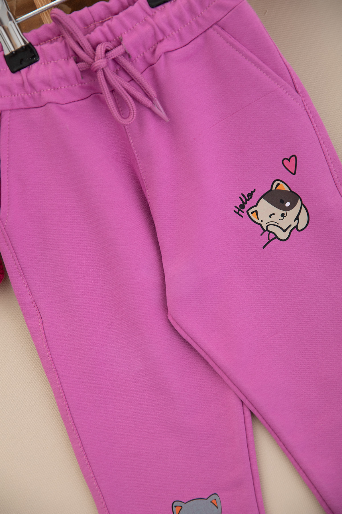 Kız Çocuk Lastik Paça Kedi Baskılı Tek Alt - 24165 (1-4 Yaş)