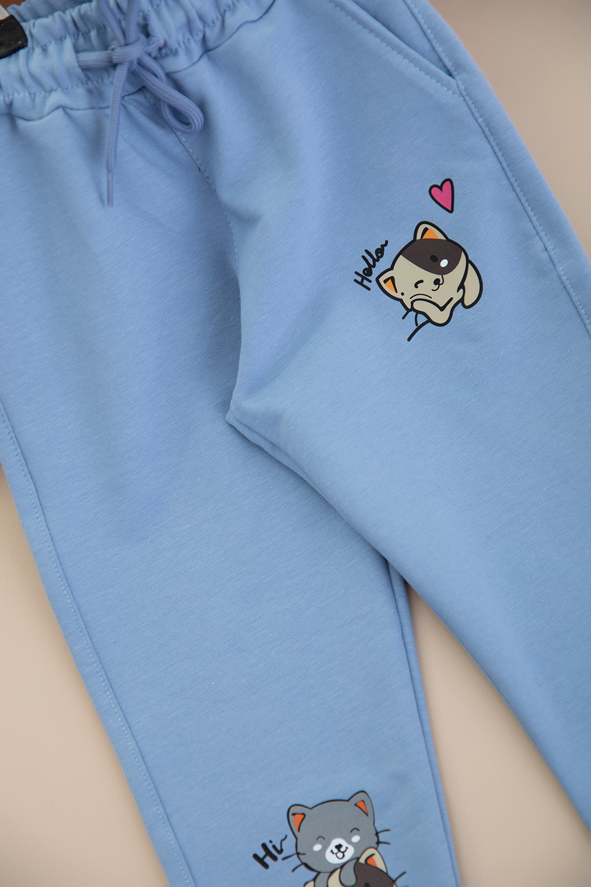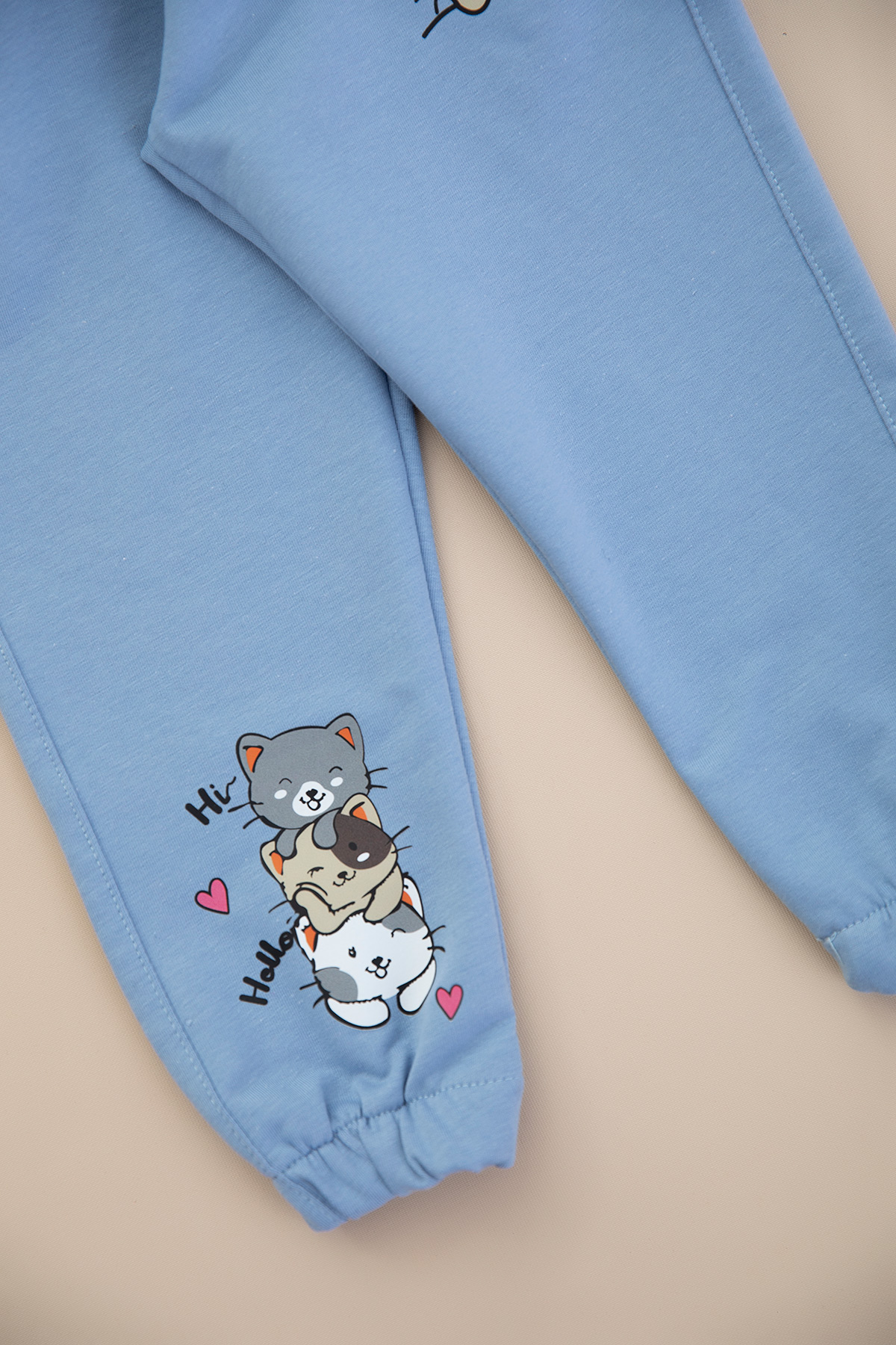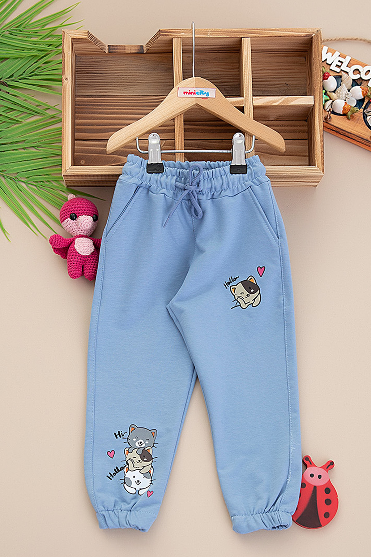 Kız Çocuk Lastik Paça Kedi Baskılı Tek Alt - 24165 (1-4 Yaş)