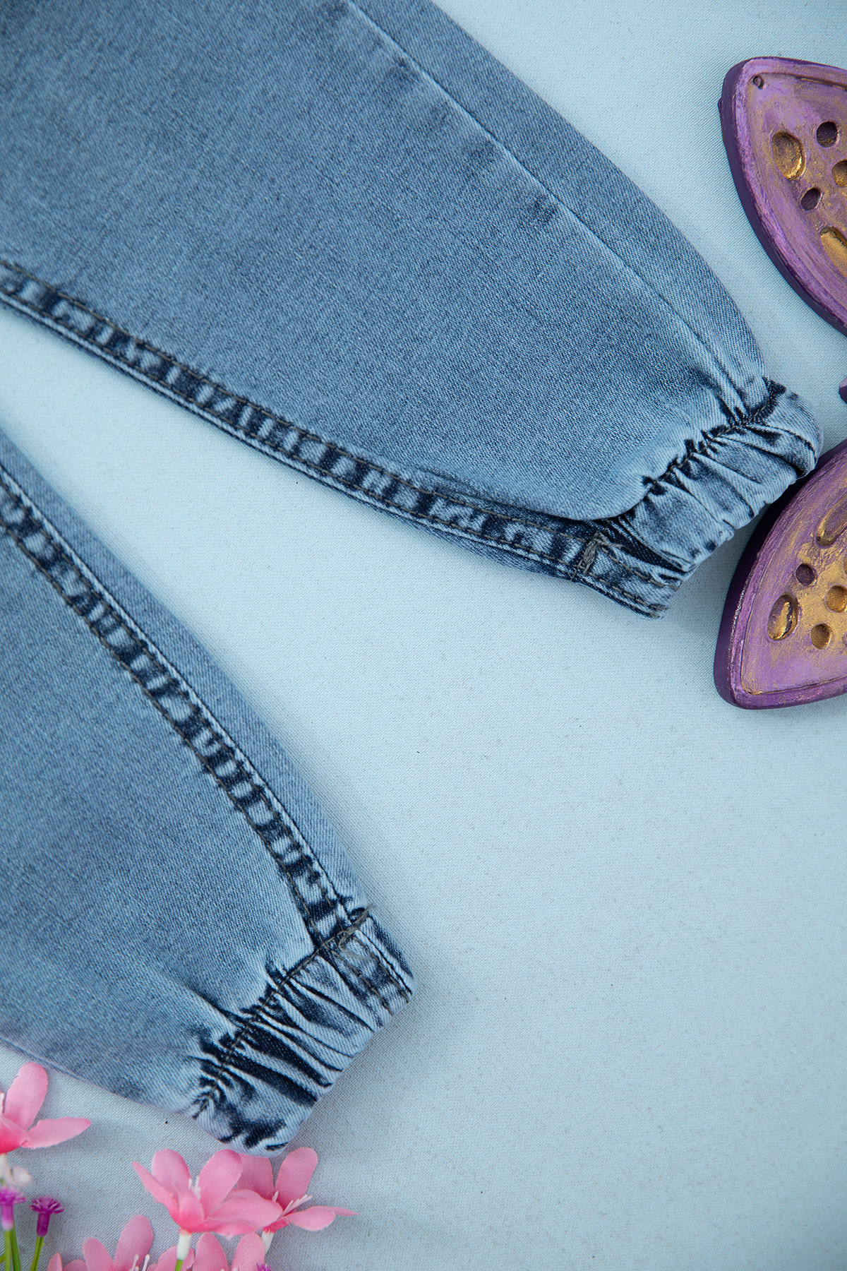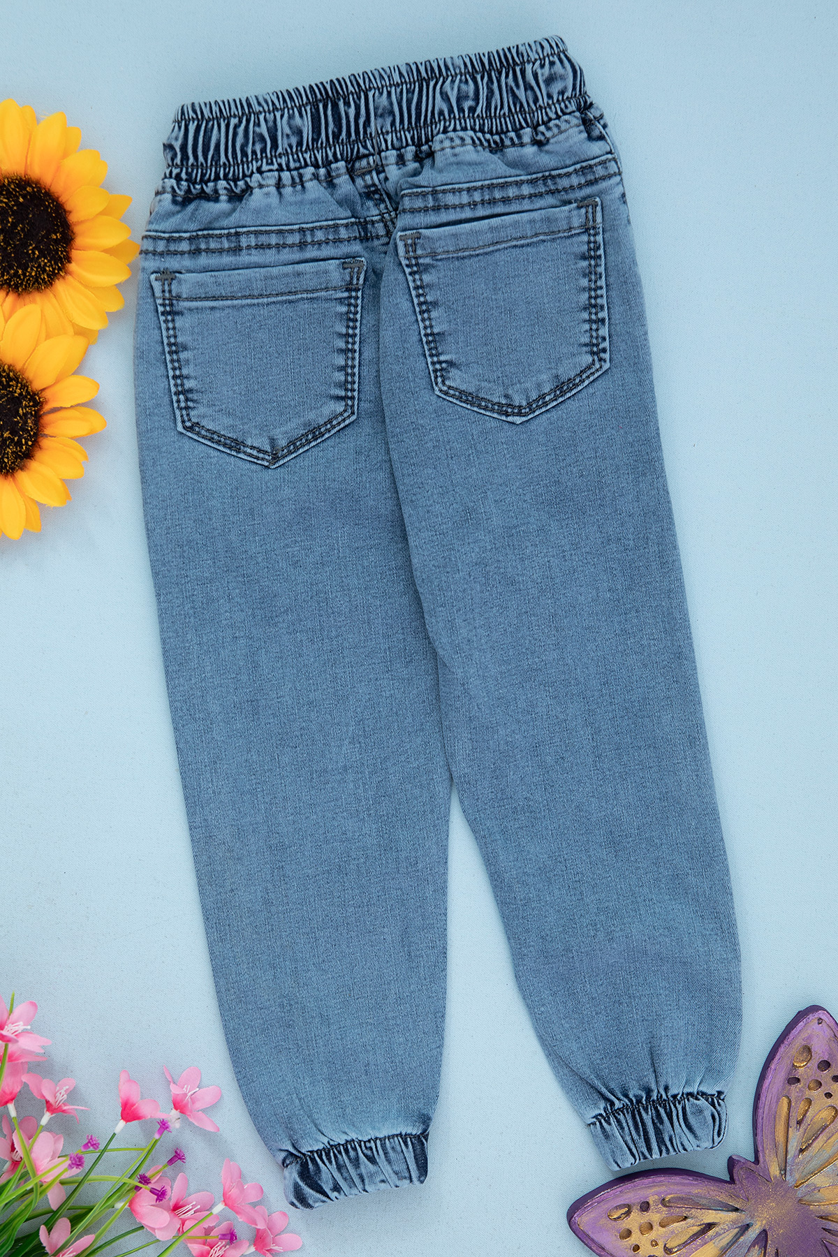 Kız Çocuk Lastikli Ayıcıklı Kot Pantolon - 1716 (3-7 Yaş)