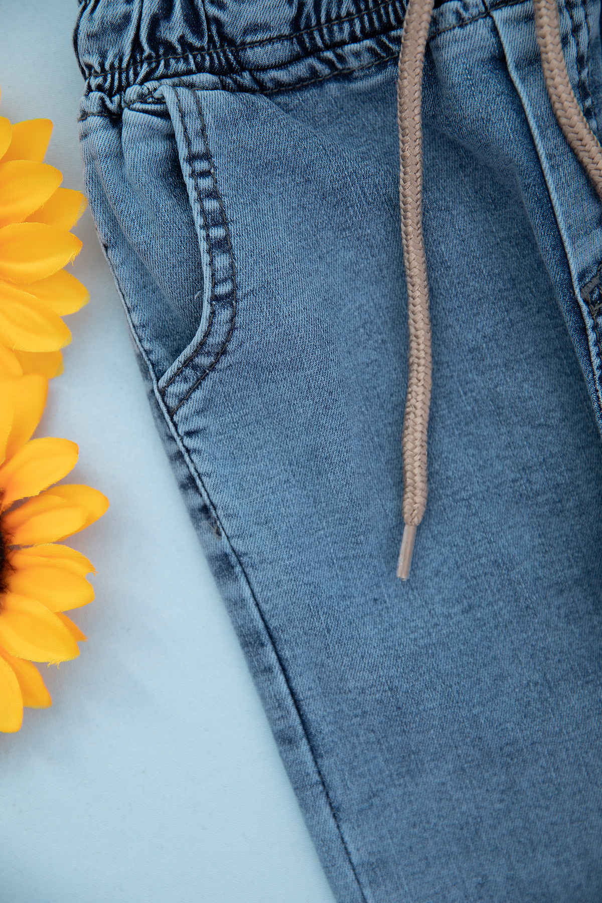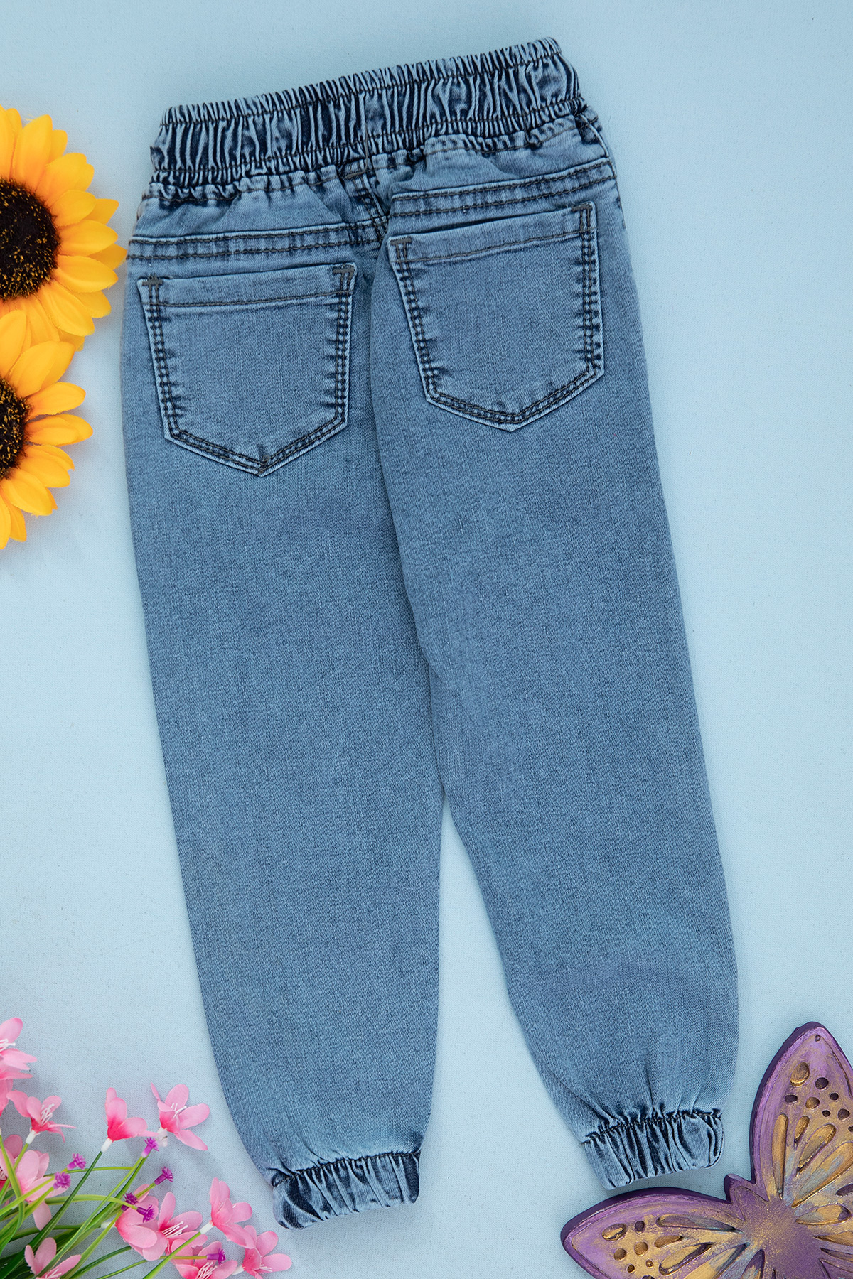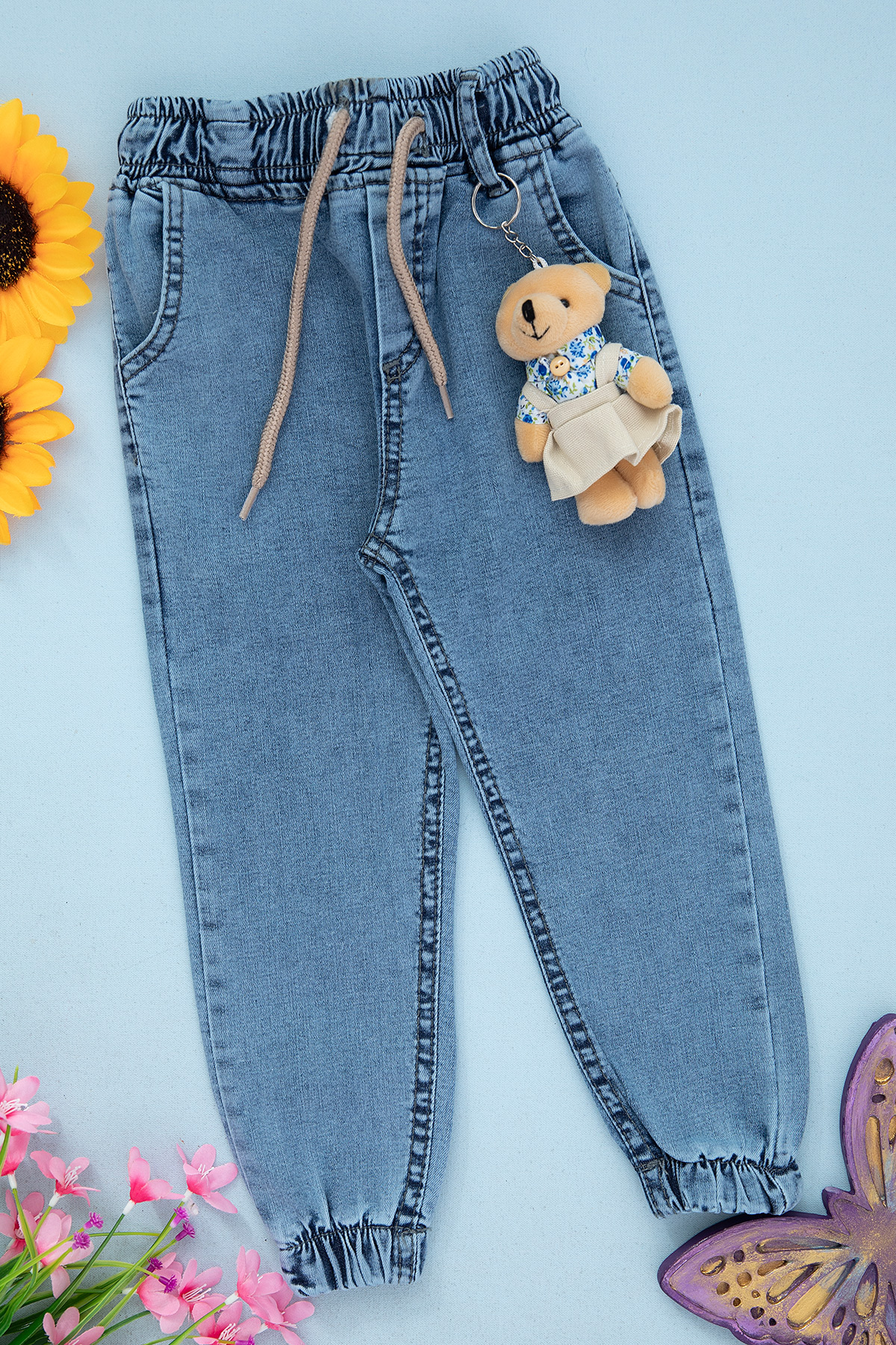 Kız Çocuk Lastikli Ayıcıklı Kot Pantolon - 2716 (8-12 Yaş)