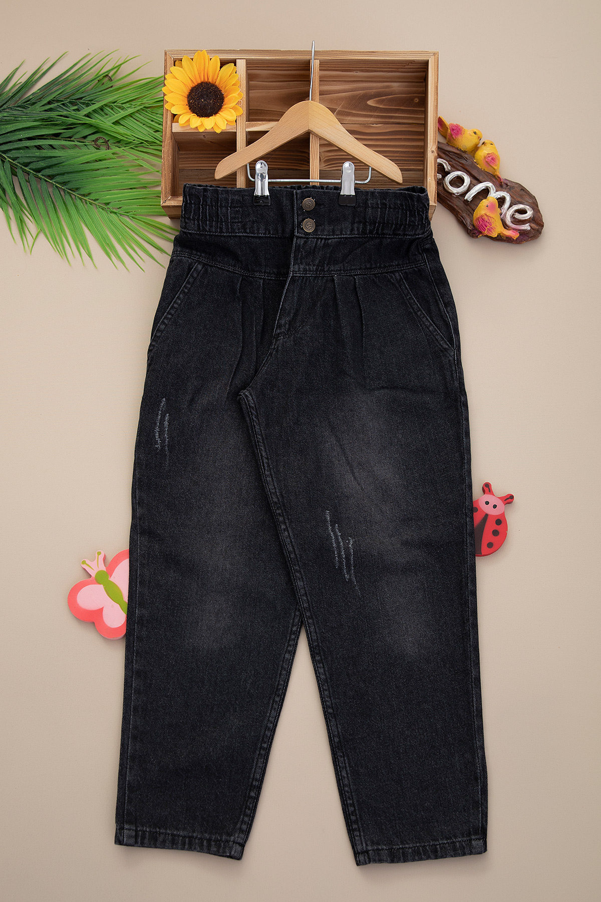 Kız Çocuk Lastikli Geniş Kalıp Kot Pantolon (13-17 Yaş)