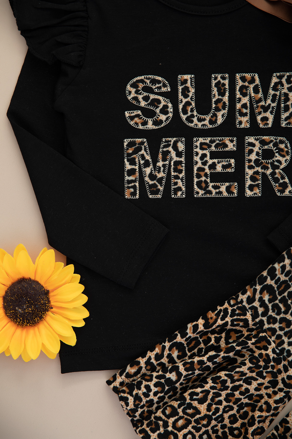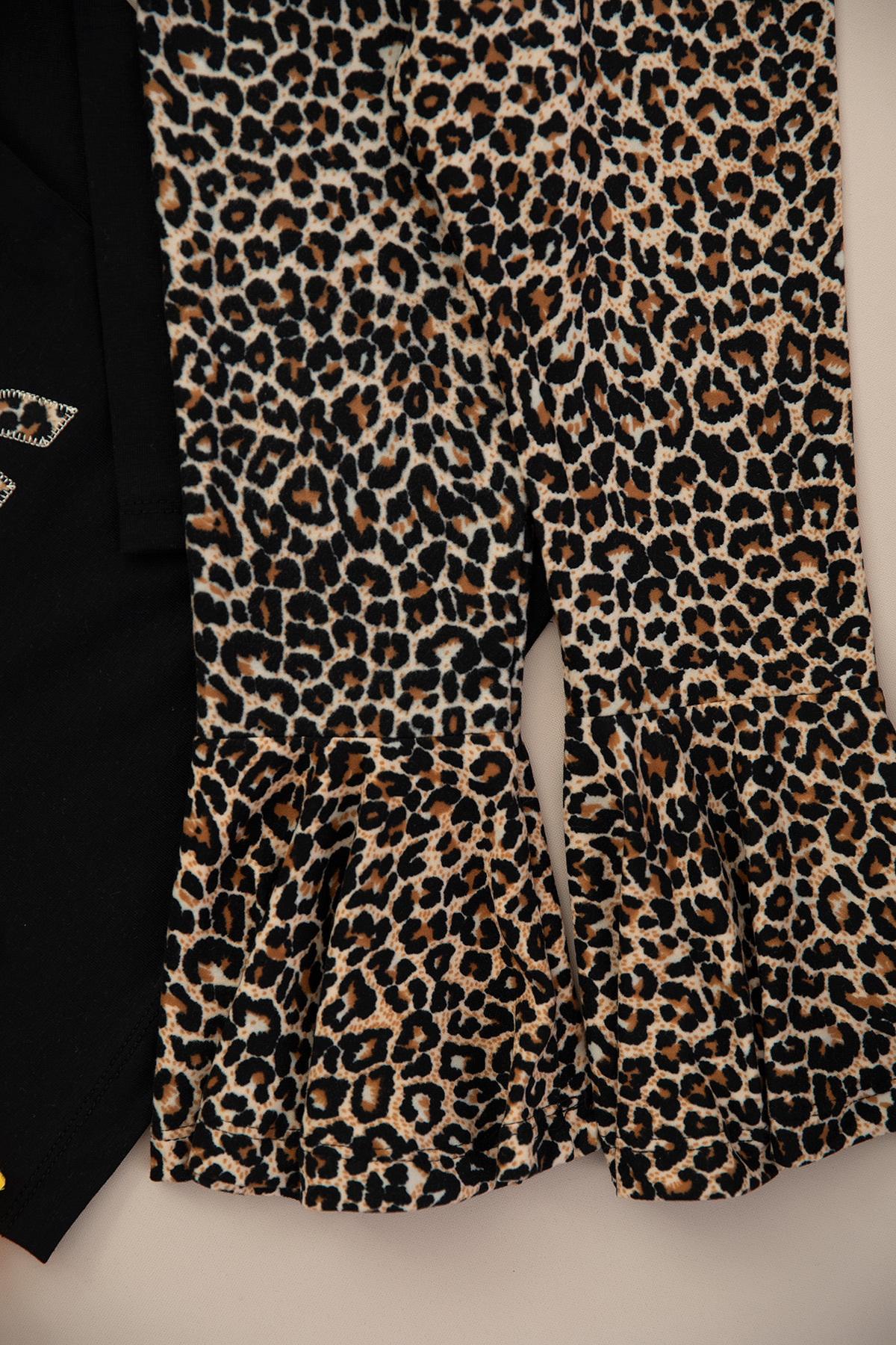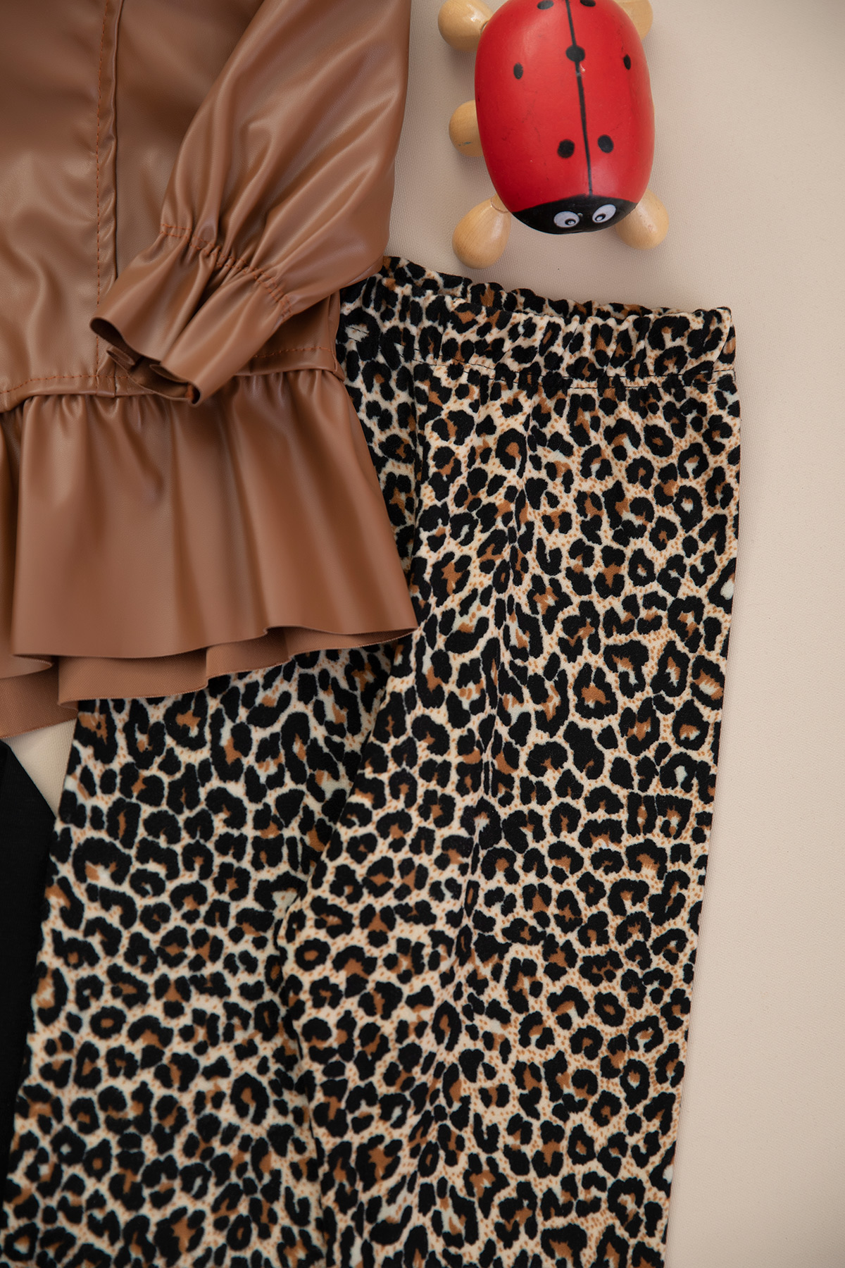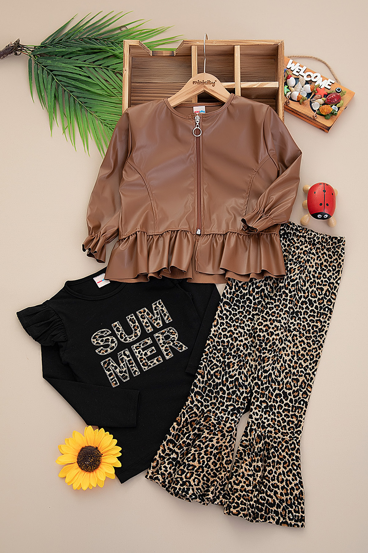 Kız Çocuk Leopar Badi Deri Ceketli Takım - 12536 (5-9 Yaş)