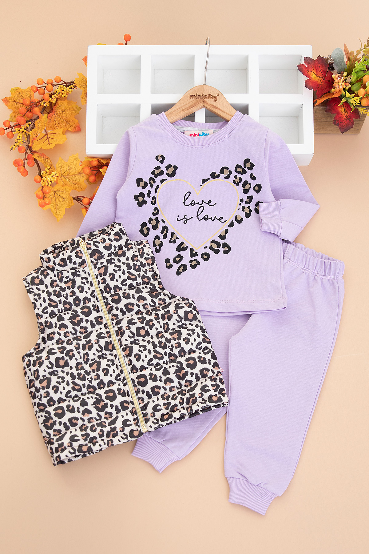 Kız Çocuk Leopar Baskılı Yelekli Takım - 333 (1-4 Yaş)