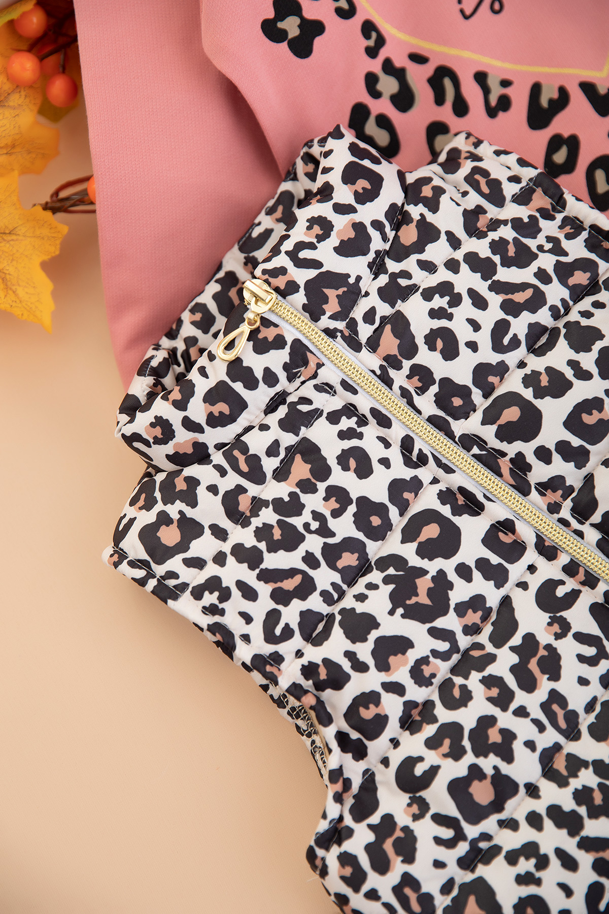Kız Çocuk Leopar Baskılı Yelekli Takım - 333 (1-4 Yaş)