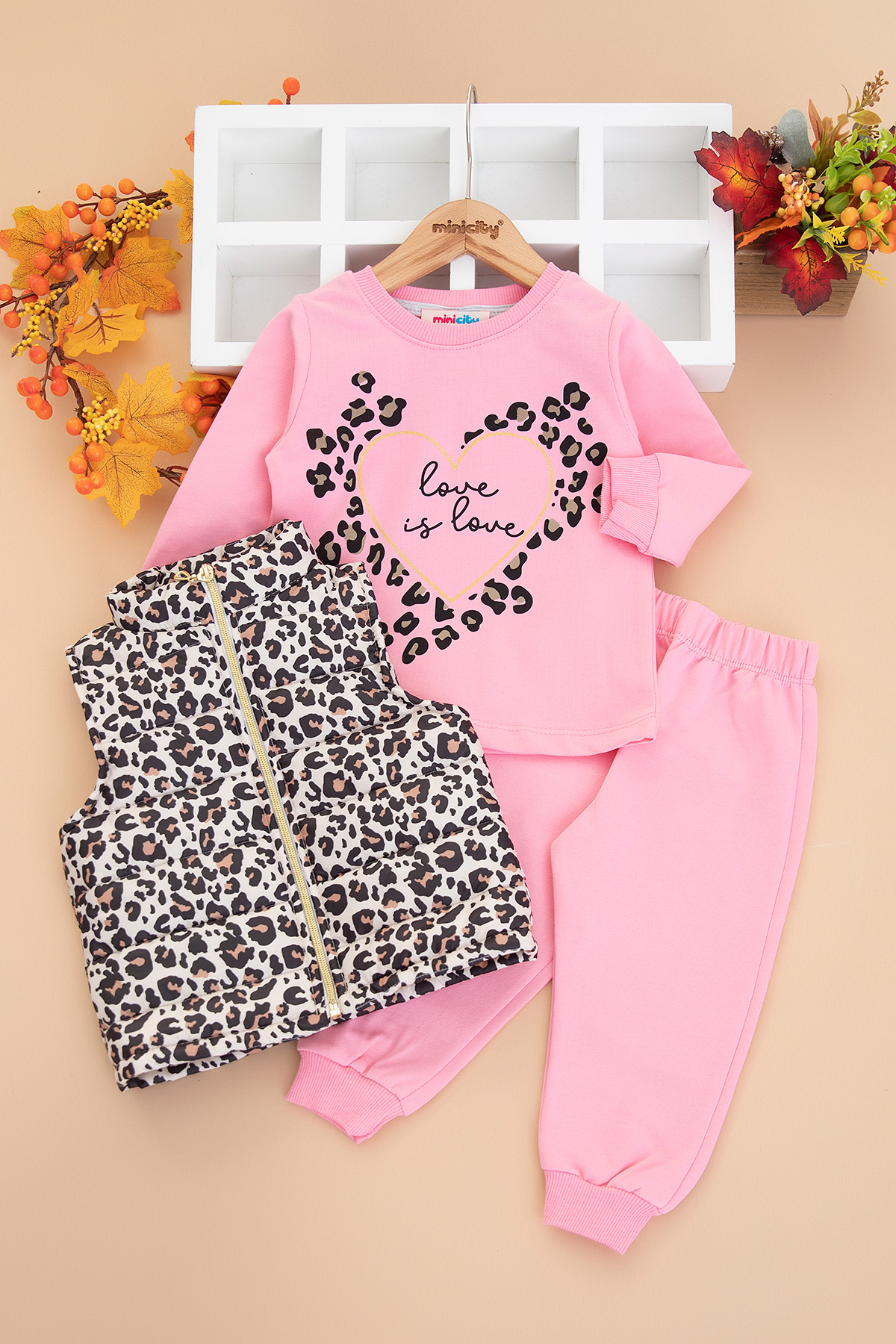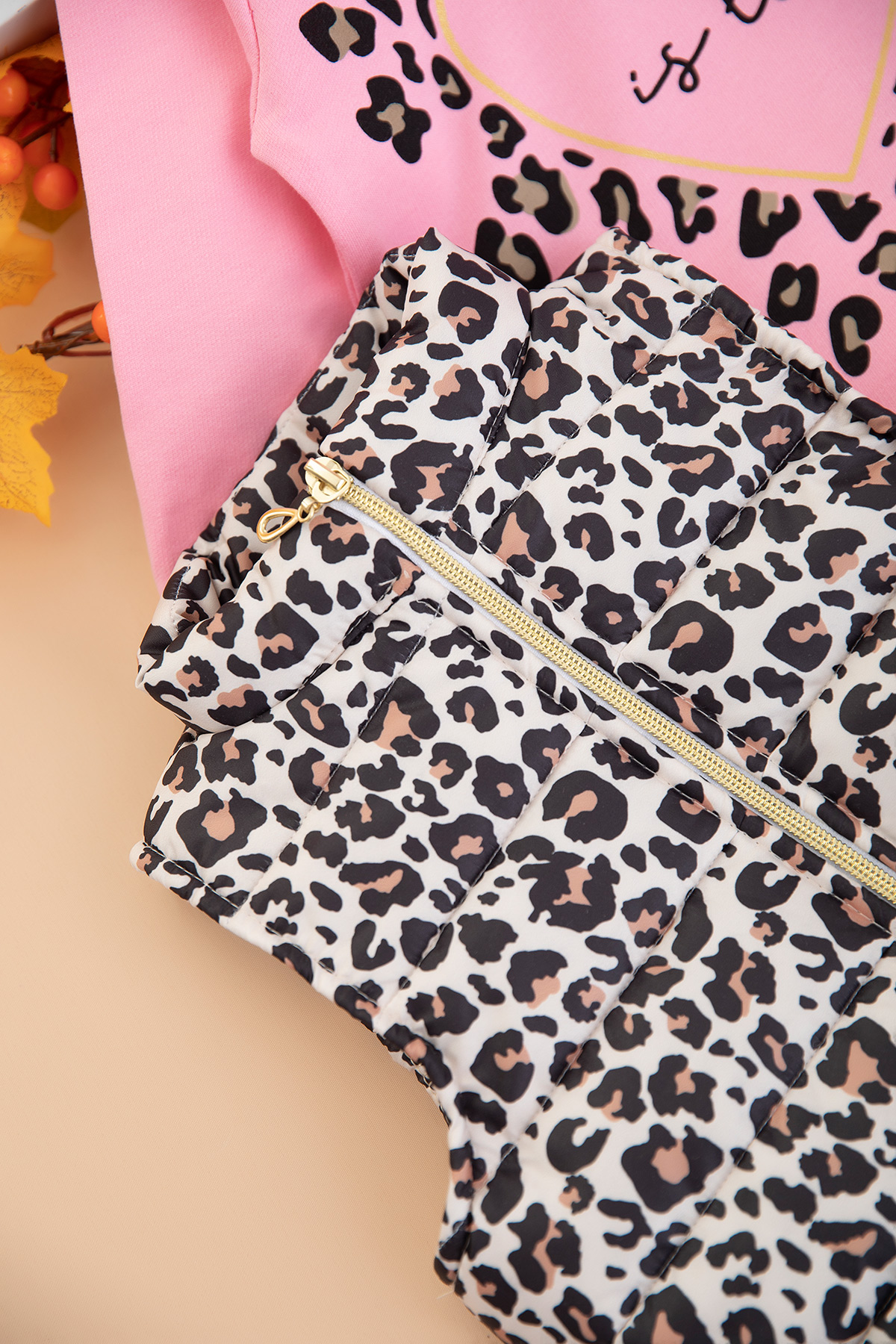 Kız Çocuk Leopar Baskılı Yelekli Takım - 333 (1-4 Yaş)