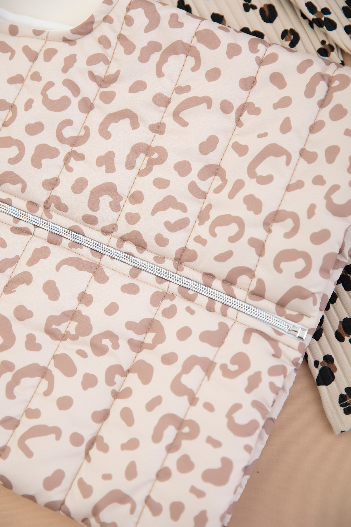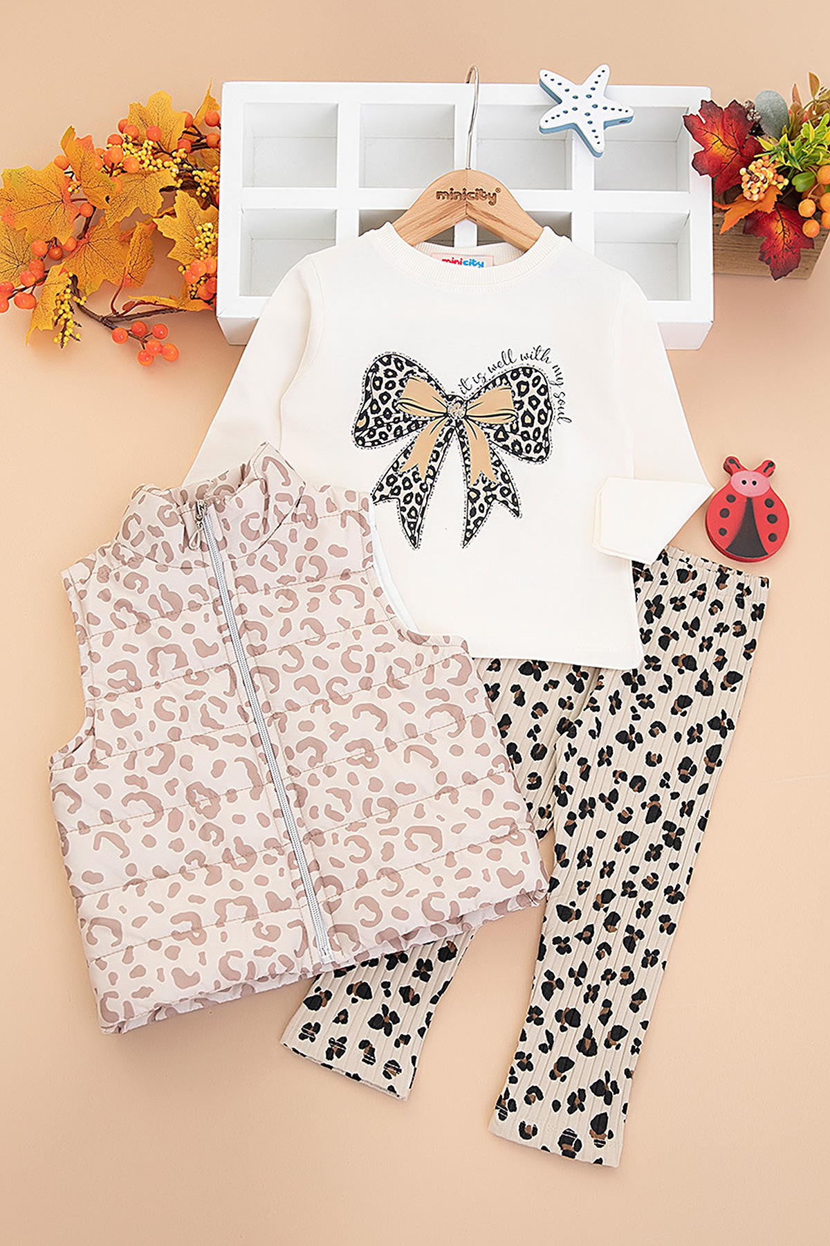 Kız Çocuk Leopar Baskılı Yelekli Takım - 3688 (3-6 Yaş)