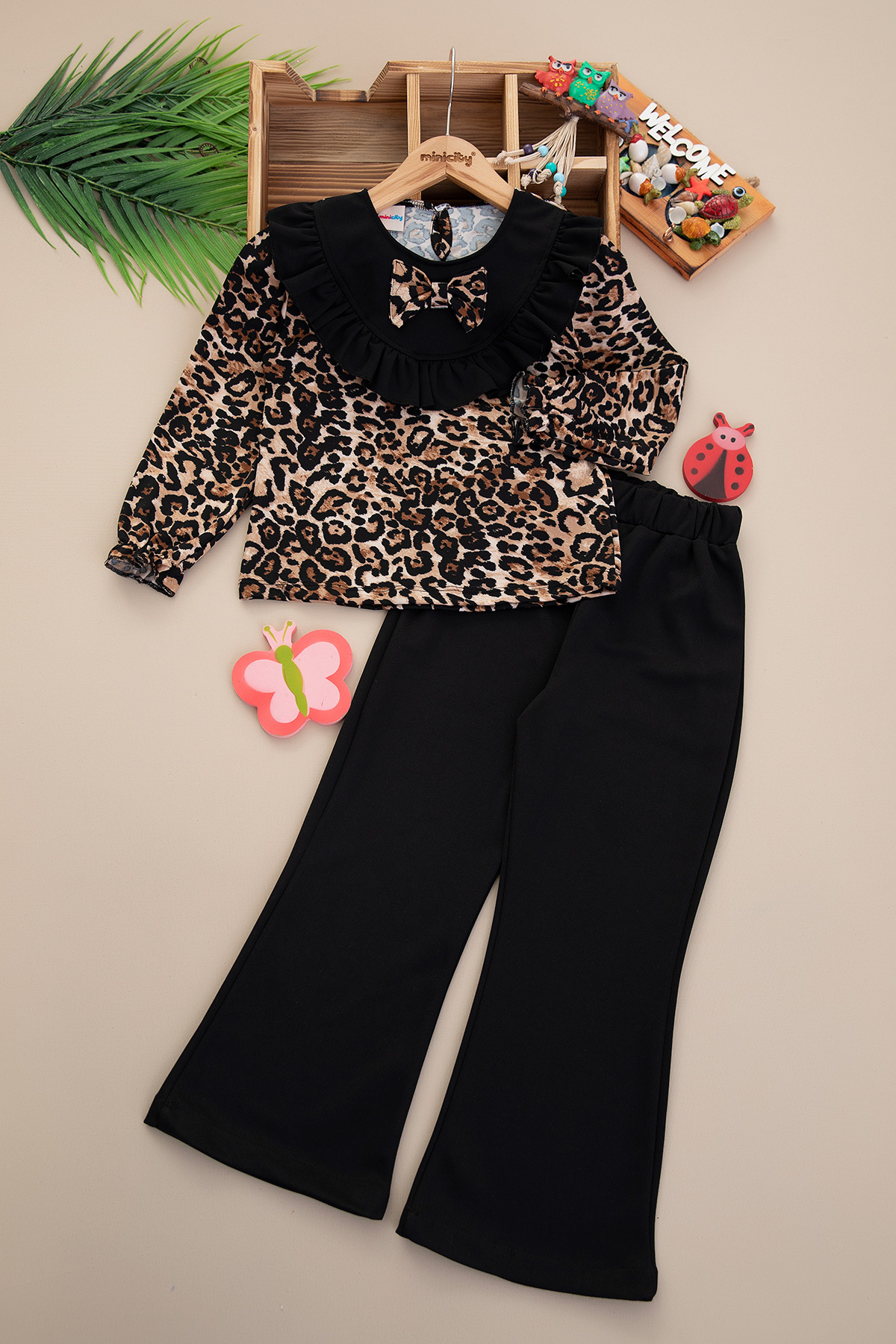 Kız Çocuk Leopar Bluzlu Pantolon Takım - 5115 (6-9 Yaş)