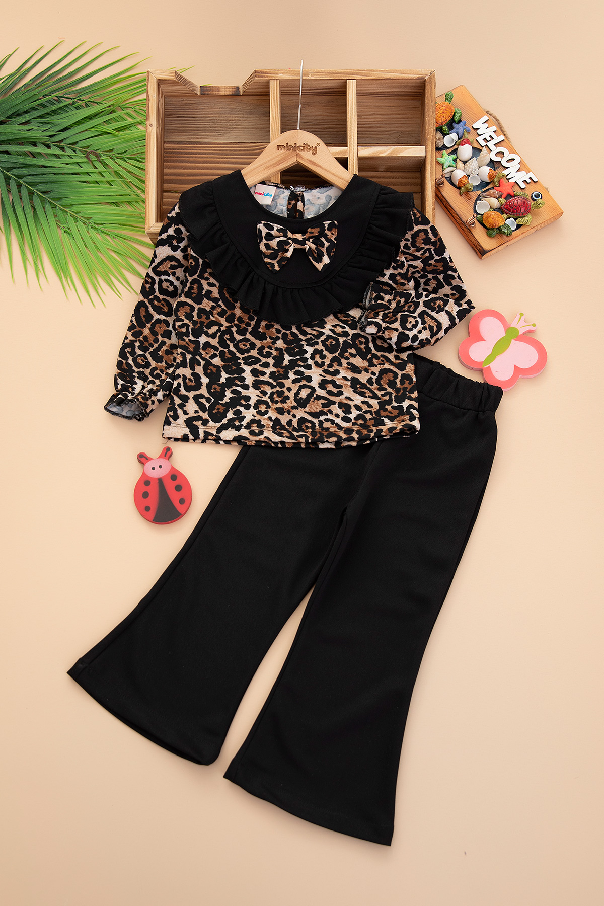 Kız Çocuk Leopar Buluzlu Pantolon Takım - 5112 (2-5 Yaş)