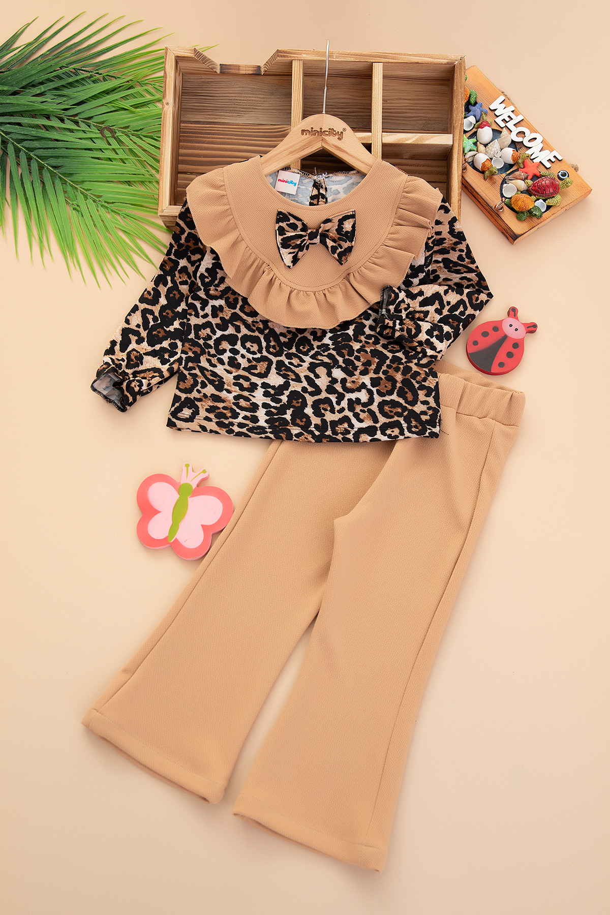 Kız Çocuk Leopar Buluzlu Pantolon Takım - 5112 (2-5 Yaş)