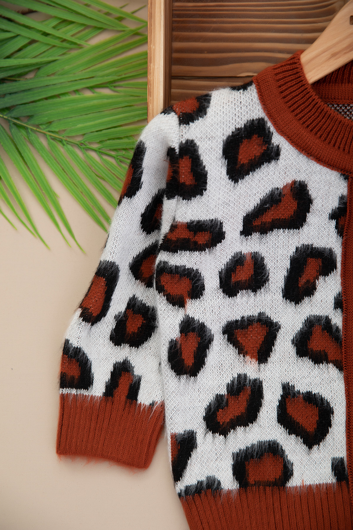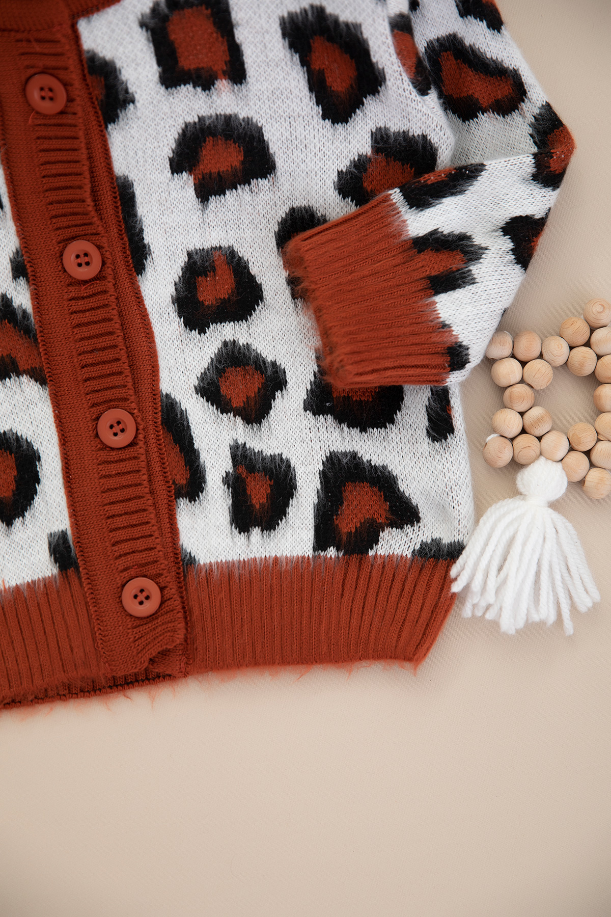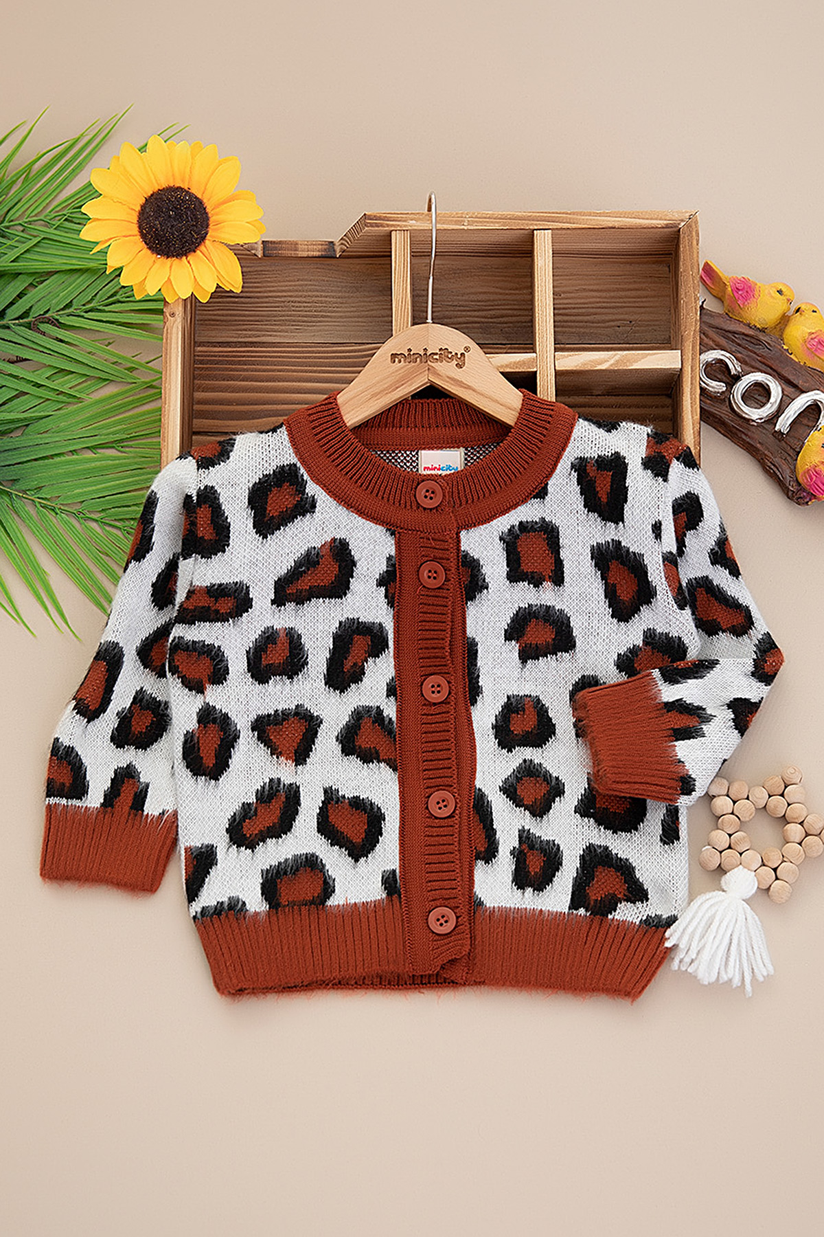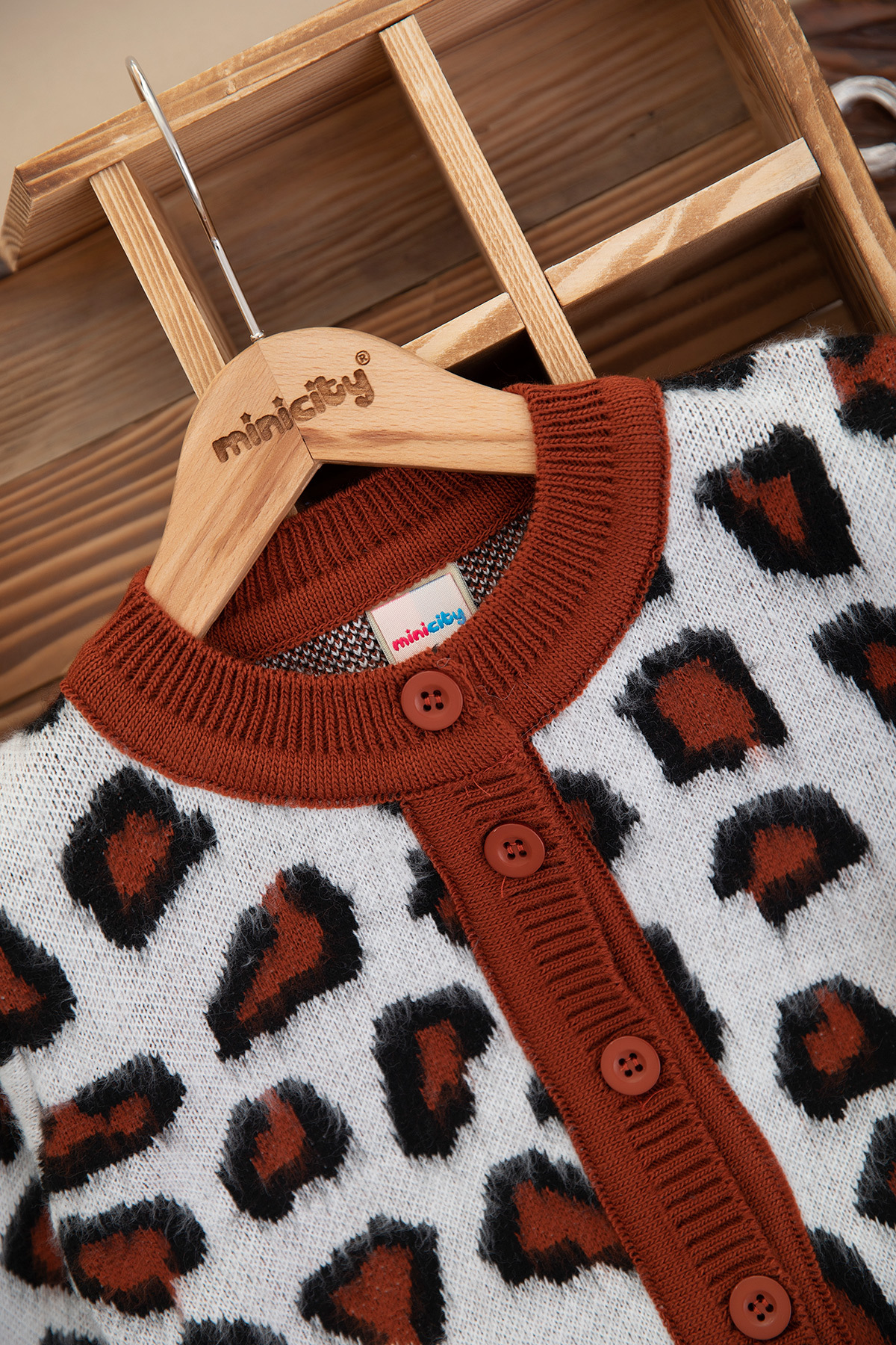 Kız Çocuk Leopar Düğmeli Triko Hırka (2-8 Yaş)