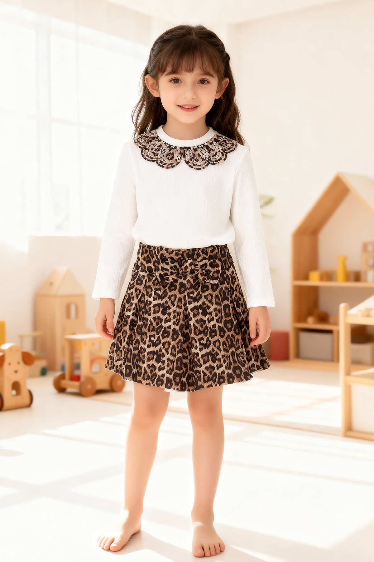Kız Çocuk Leopar Etekli Badili Takım (3-9 Yaş)