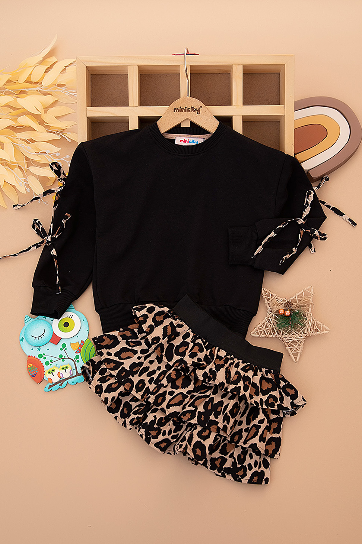 Kız Çocuk Leopar Etekli Takım - J-655 (3-10 Yaş)