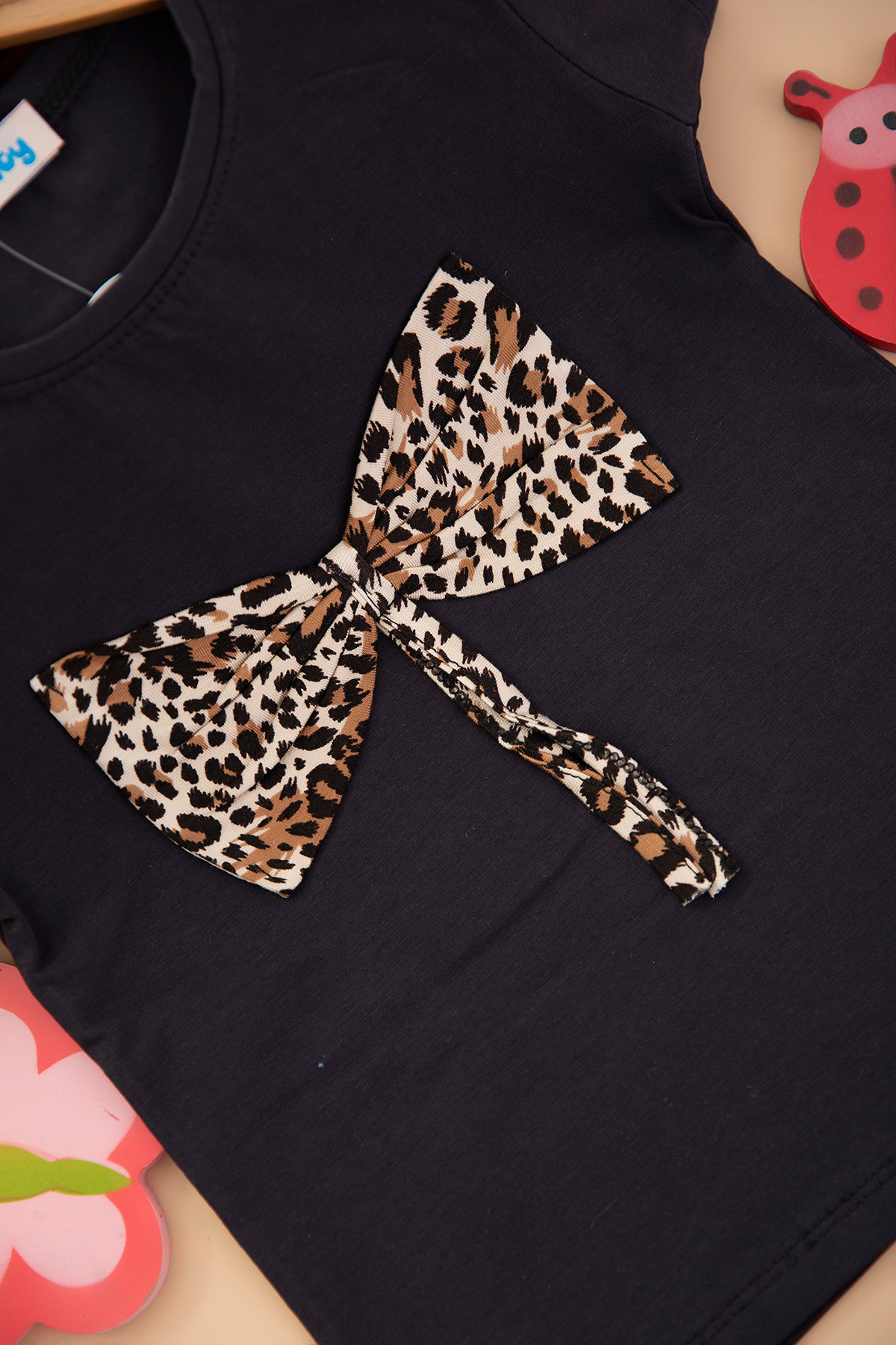 Kız Çocuk Leopar Fiyonk Likralı Badi - 536 (3-11 Yaş)
